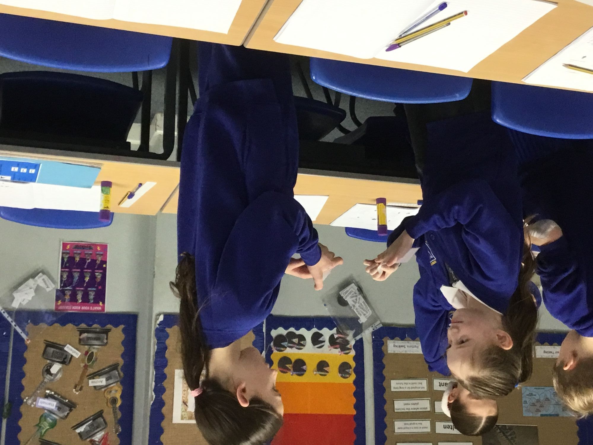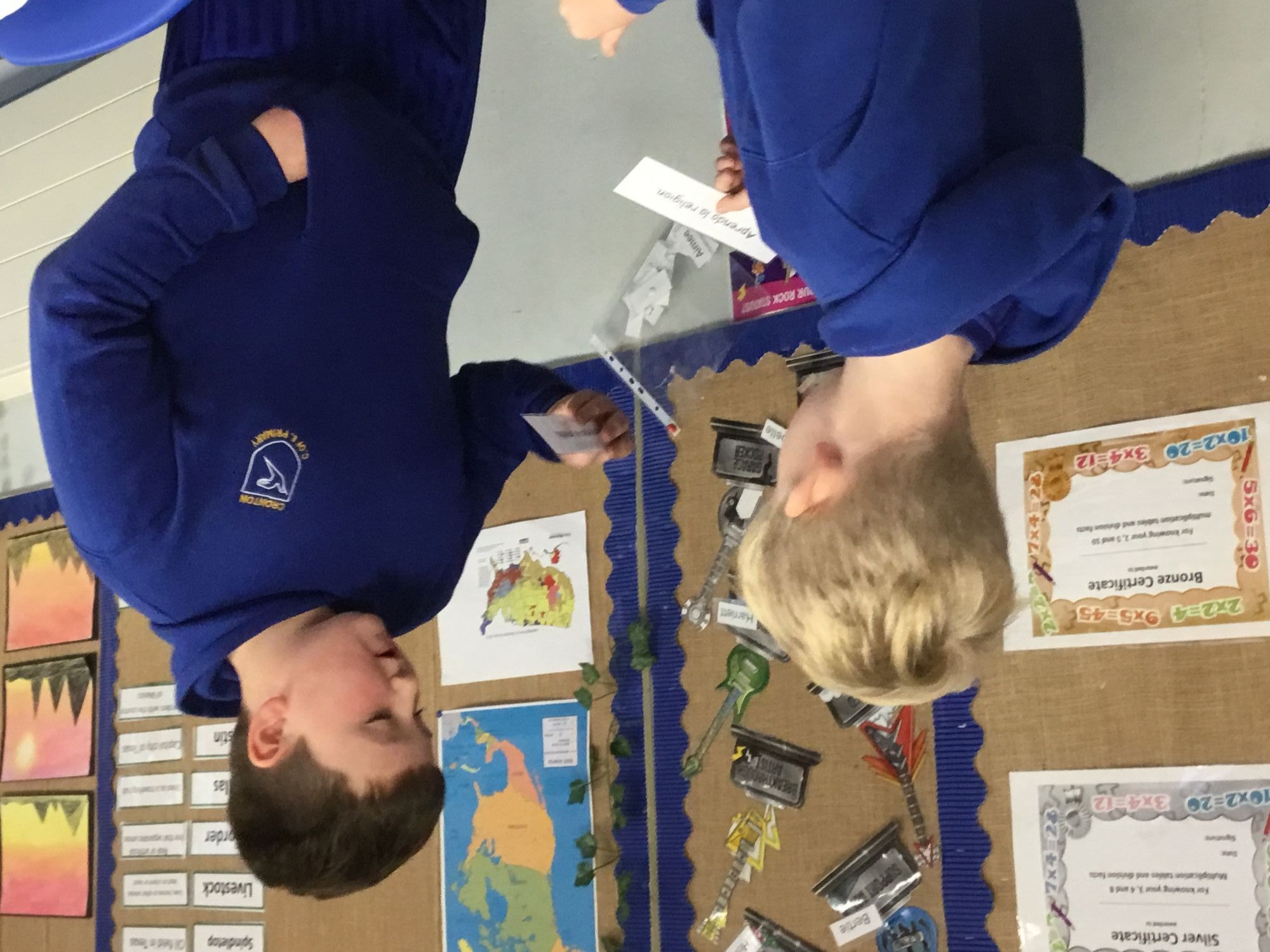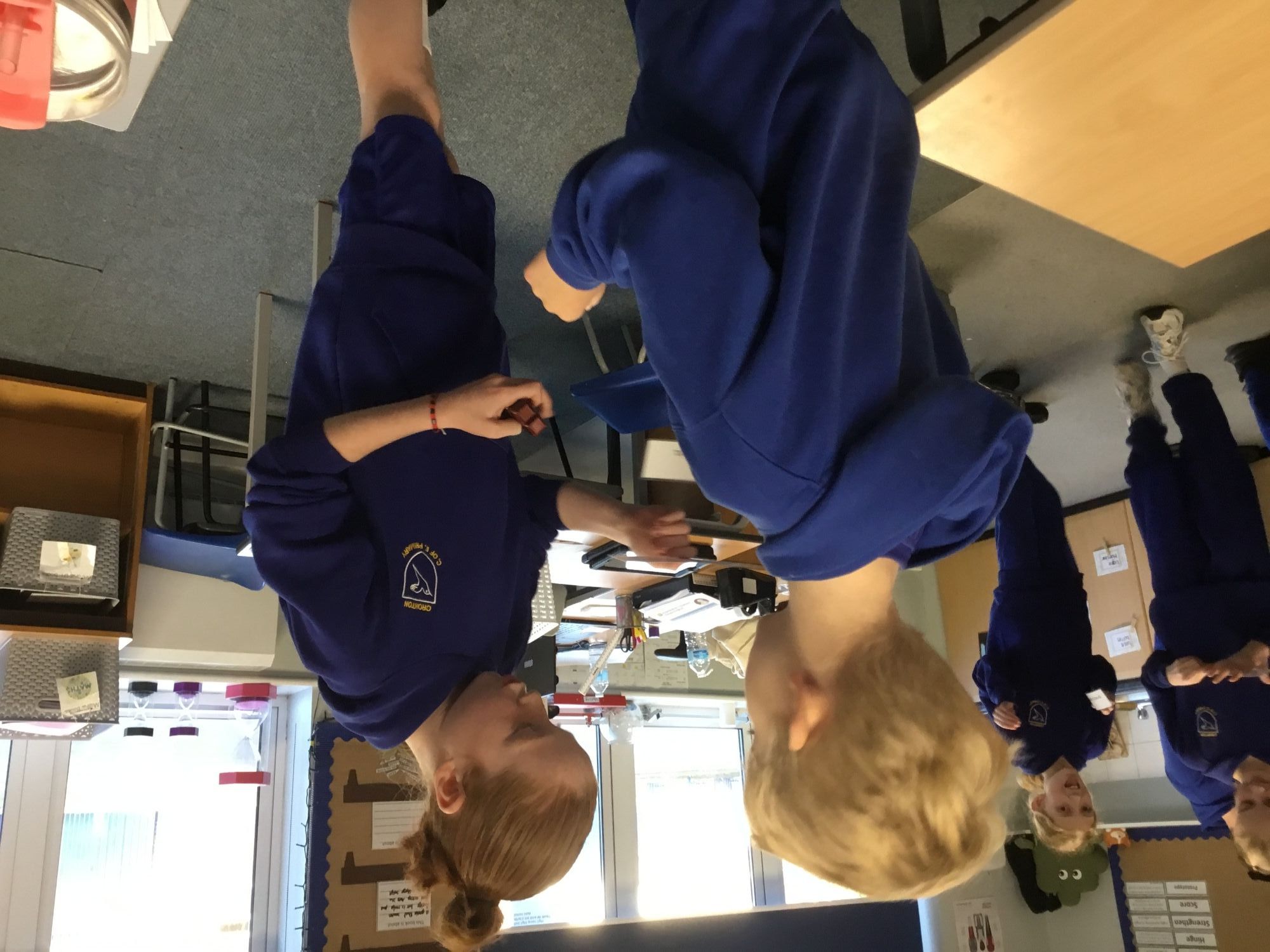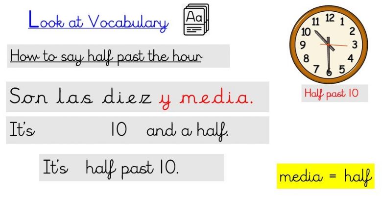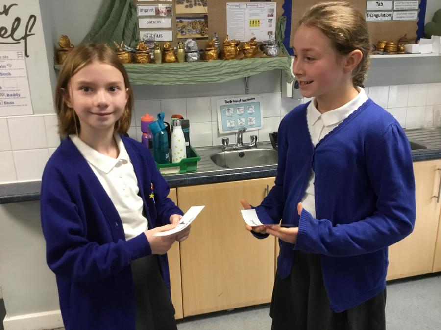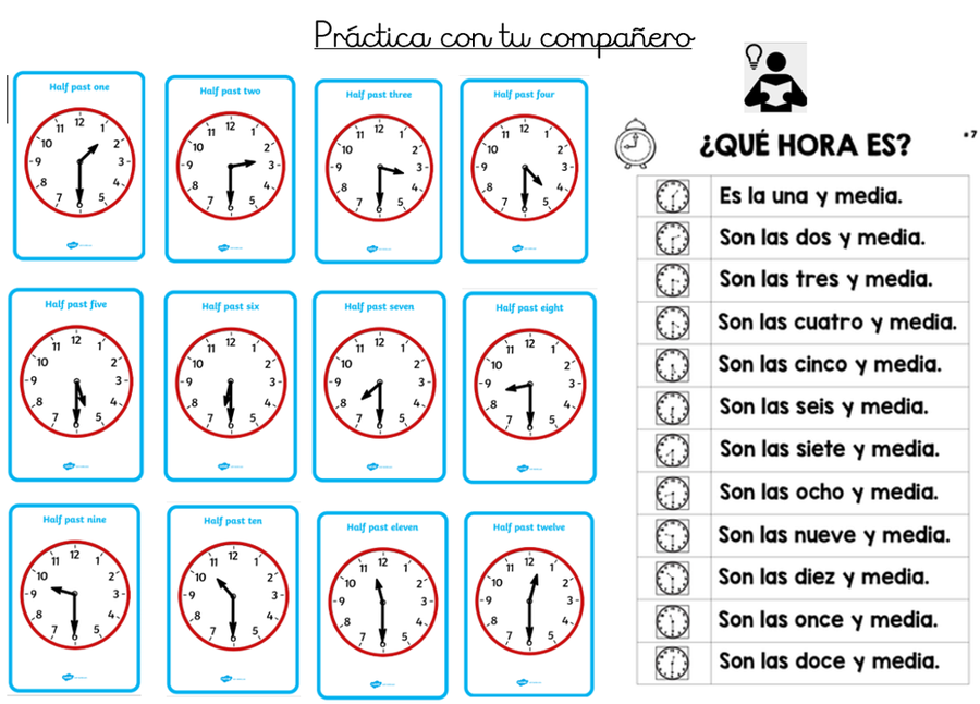 This week, we learnt how to tell the time, to half past the hour. We practised with a friend.