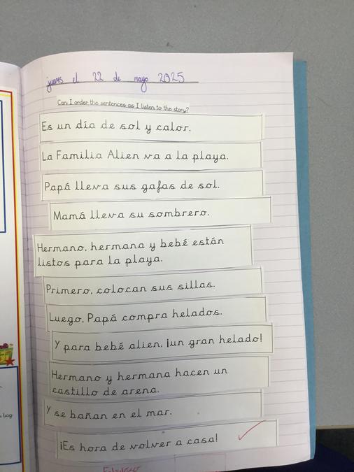 This week, we listened to a story in Spanish and had to put the story sentences in the right order.