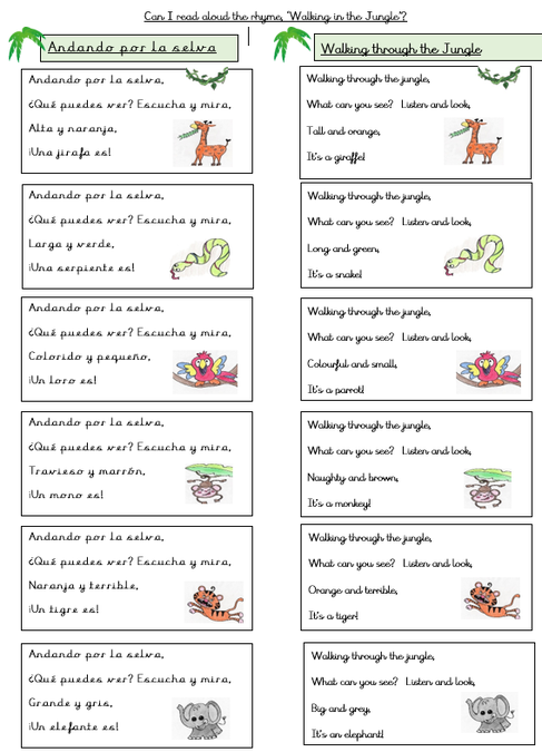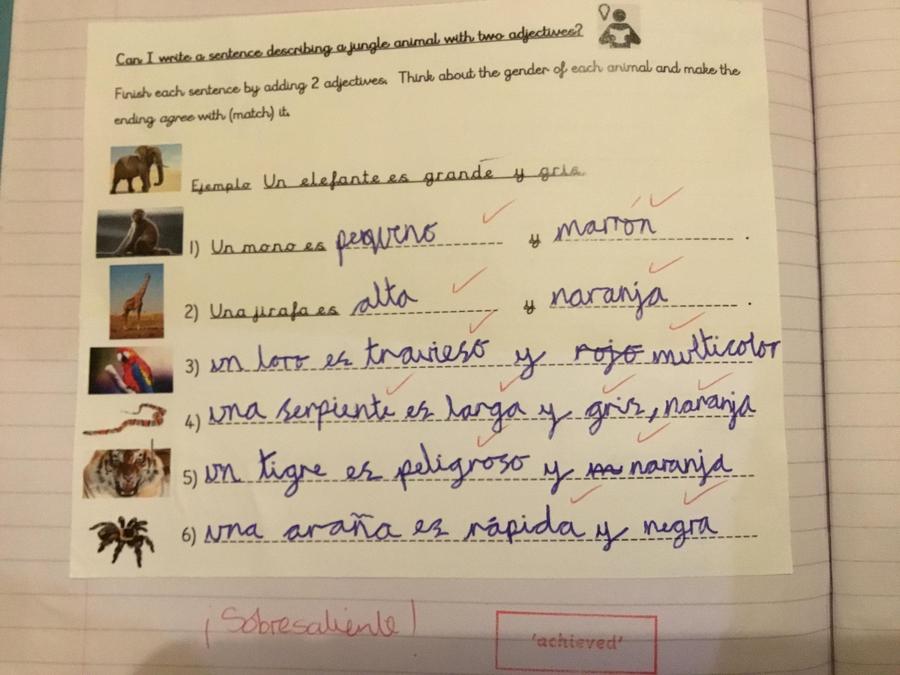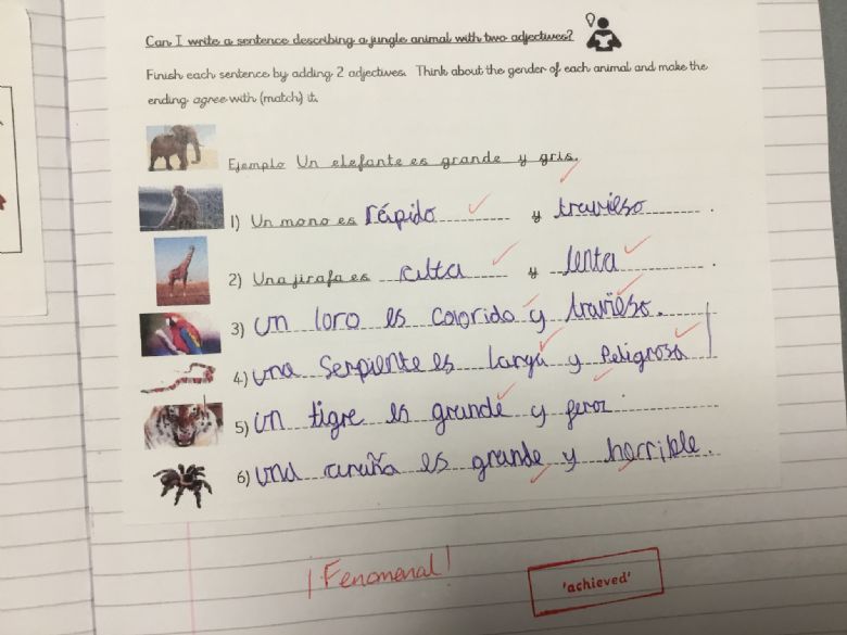 Today, we have been learning to say a jungle rhyme in Spanish, using all the animals and different adjectives to describe them.