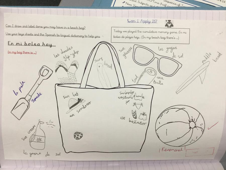 We made our own beach bags, and found more beach vocabulary in the bilingual dictionary.