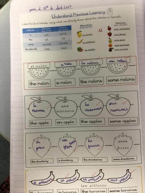 This week, we have been learning about the words a and the in Spanish. We practised using the fruit vocabulary that we already know.