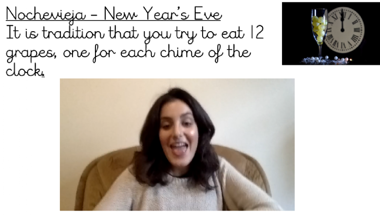Today, we learnt about a strange tradition in Spain on New Year's Eve.