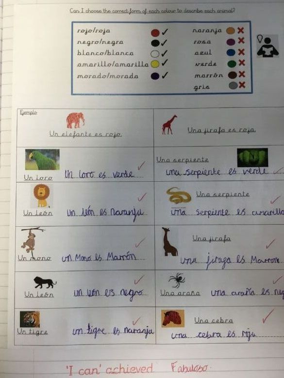 This half term we are learning how to describe jungle animals in Spanish. We began by describing them with colours.