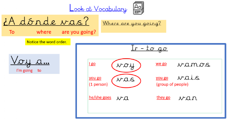 Today we looked at the whole pattern (paradigm) of the verb to go in Spanish, and practised making different sentences, using the places in the city that we know.