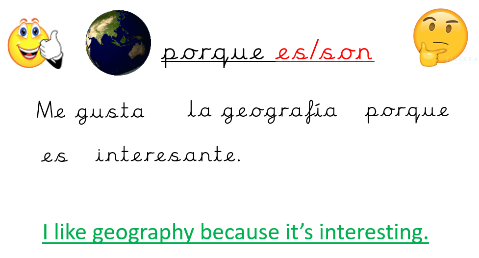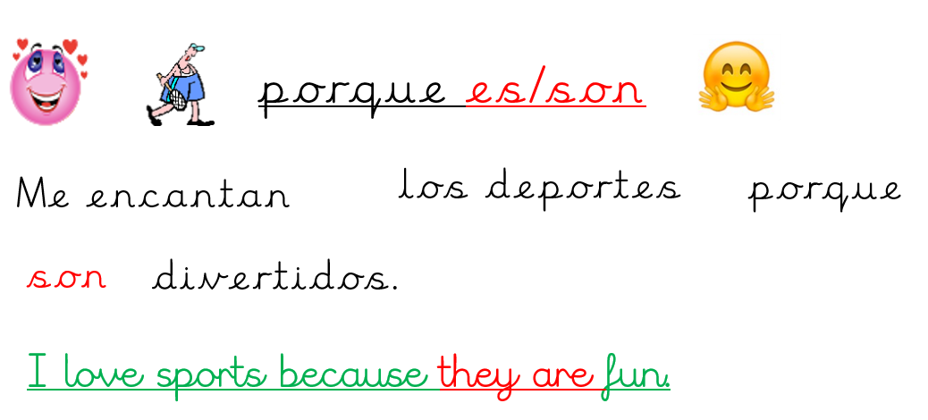 Today, we wrote sentences giving reasons for our school subject preferences.  We used the chart to help us and joined our sentences with the word because. (porque)