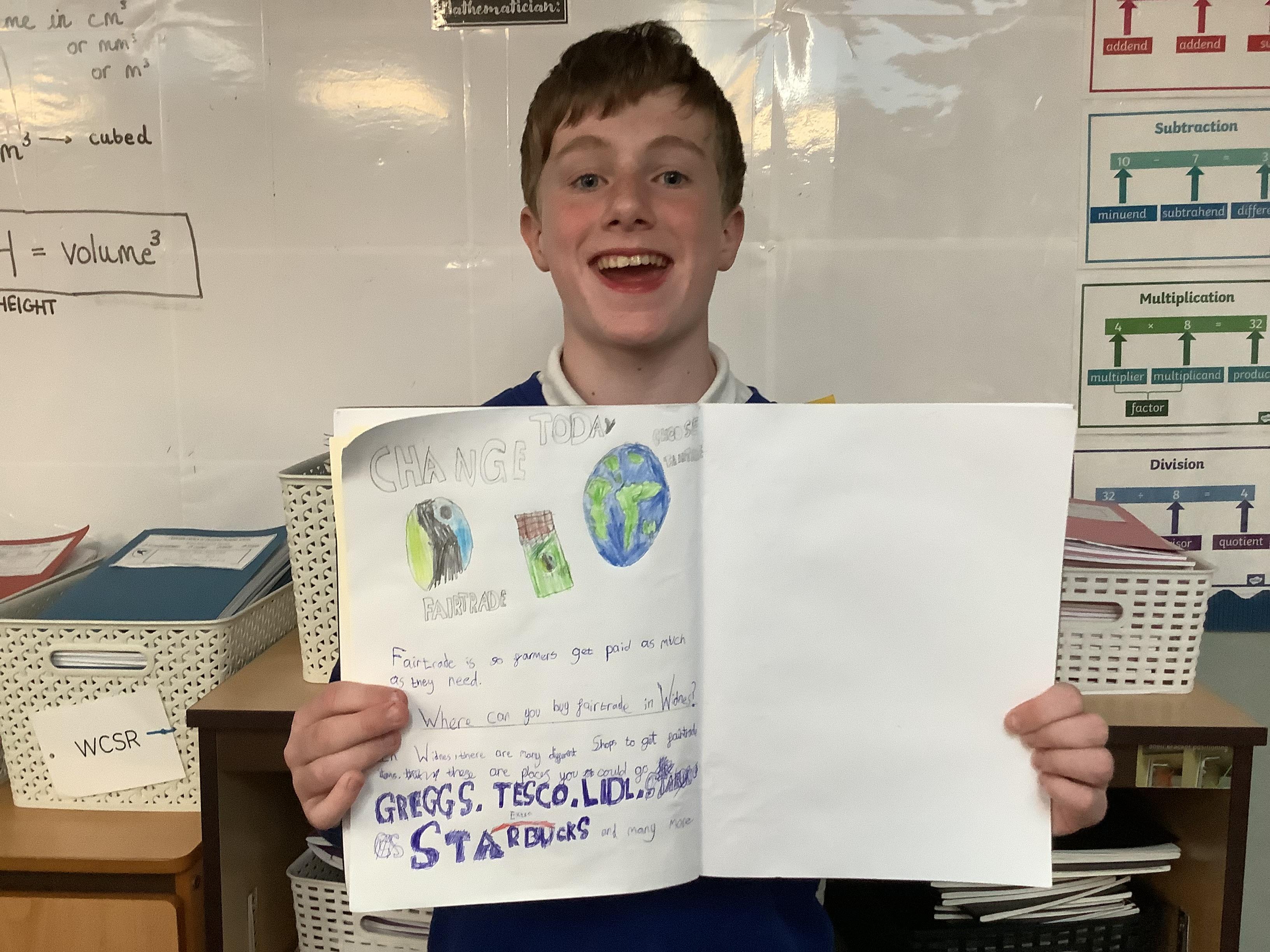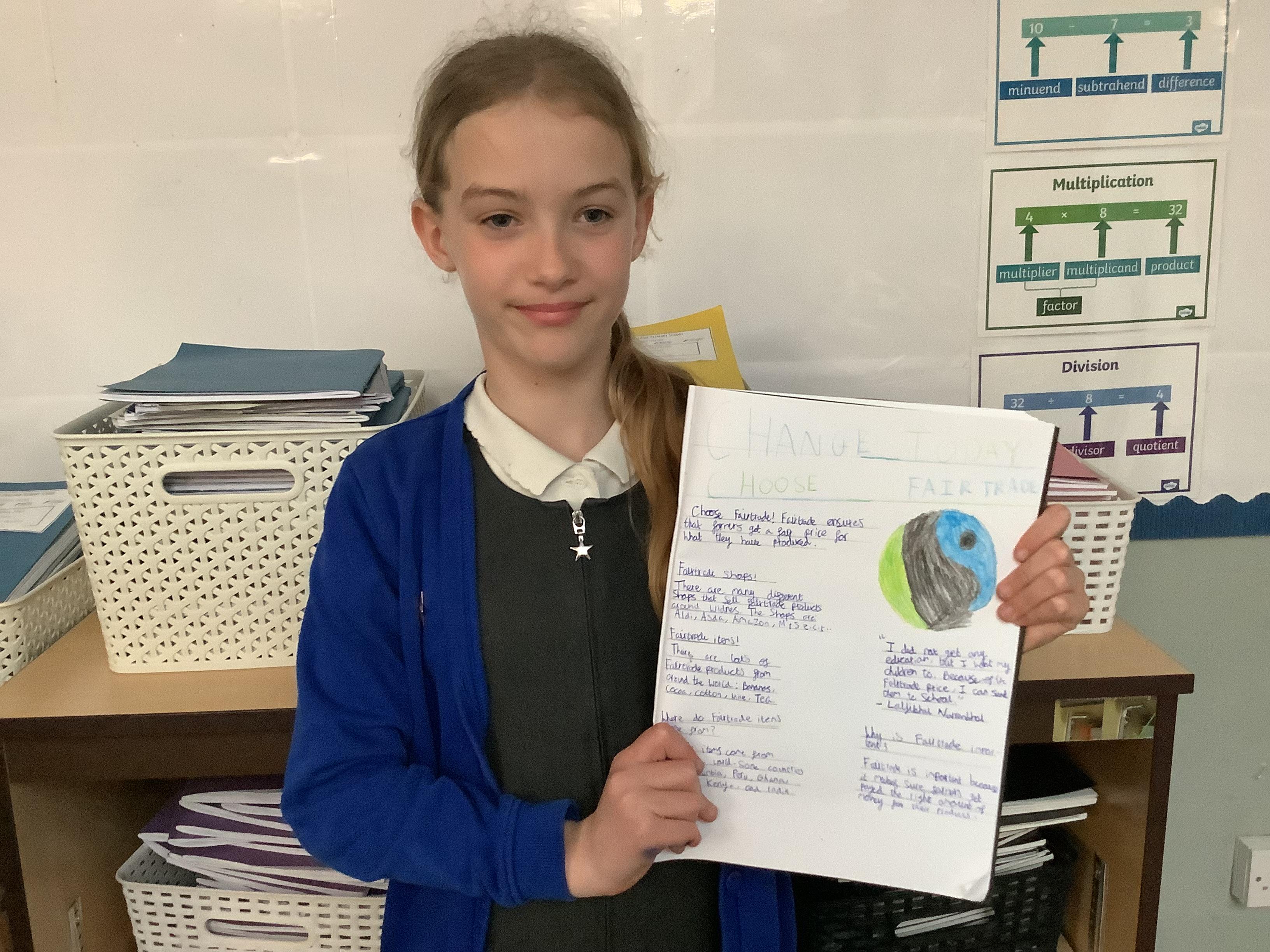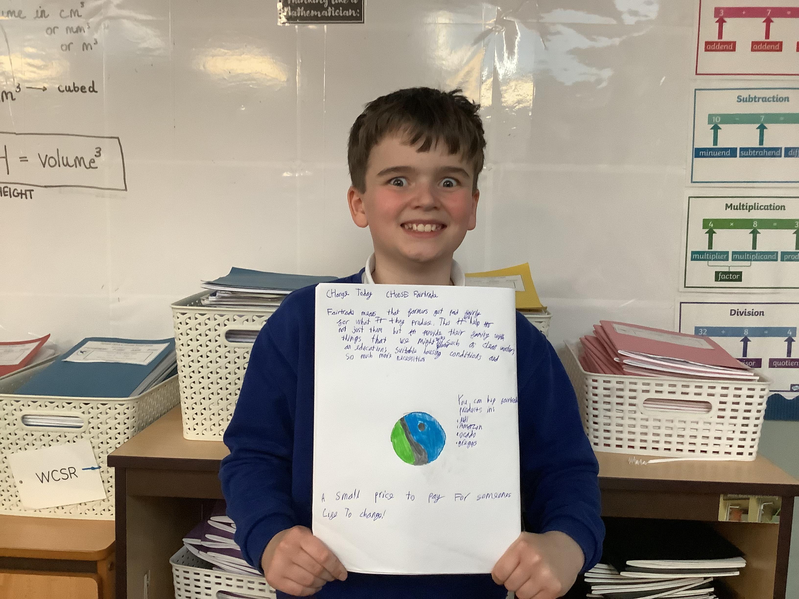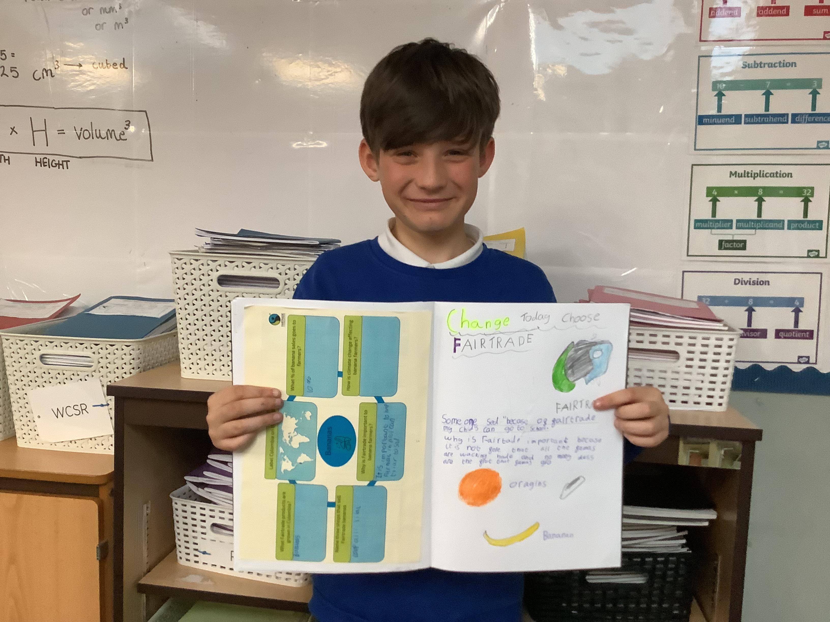 We have done lots of work on fair trade over the last two weeks too… and finished this by making some cakes out of distance products, and selling these at the Mother’s Day event today. Thank you to all of those who came in to spend time with their children.