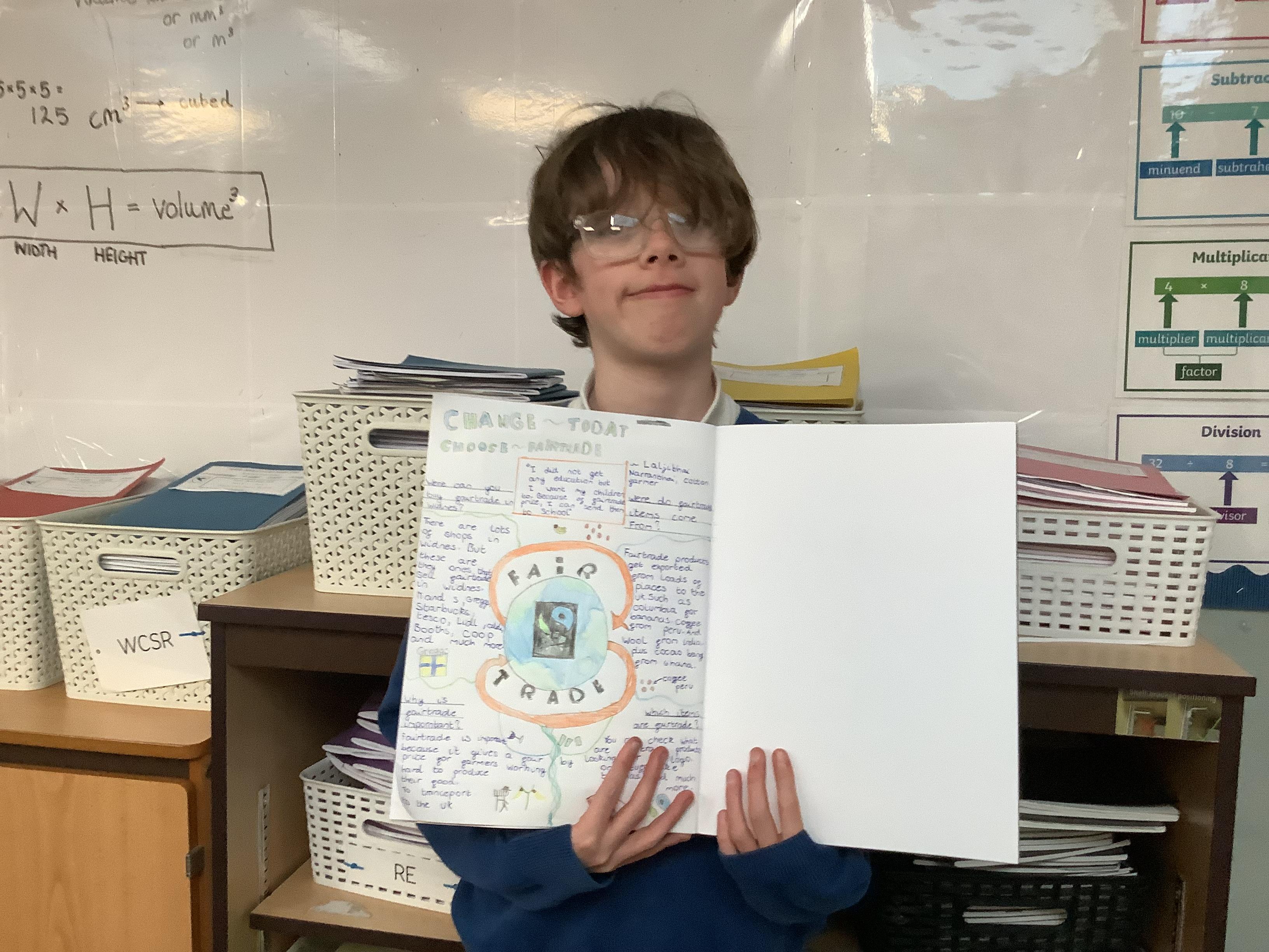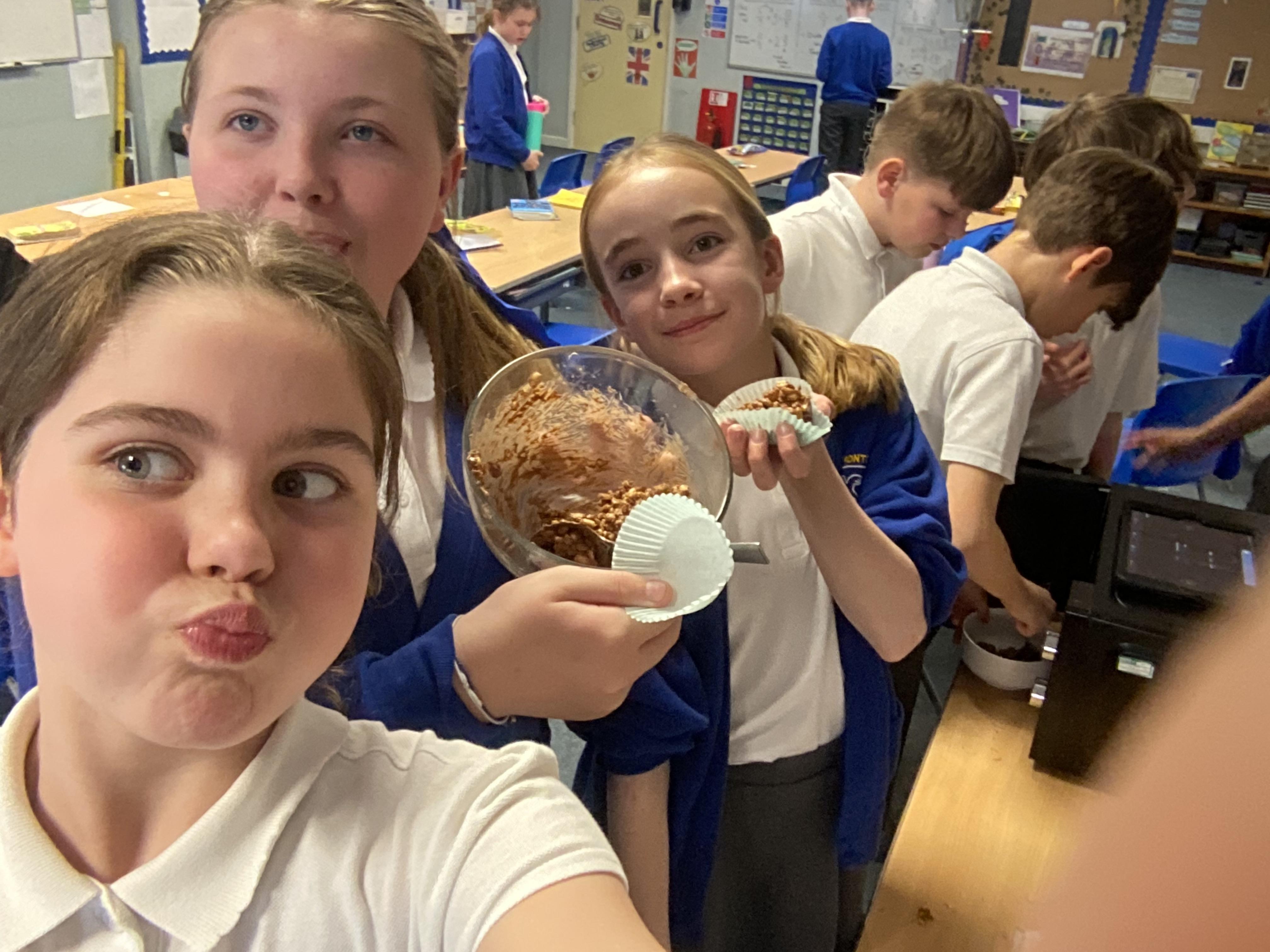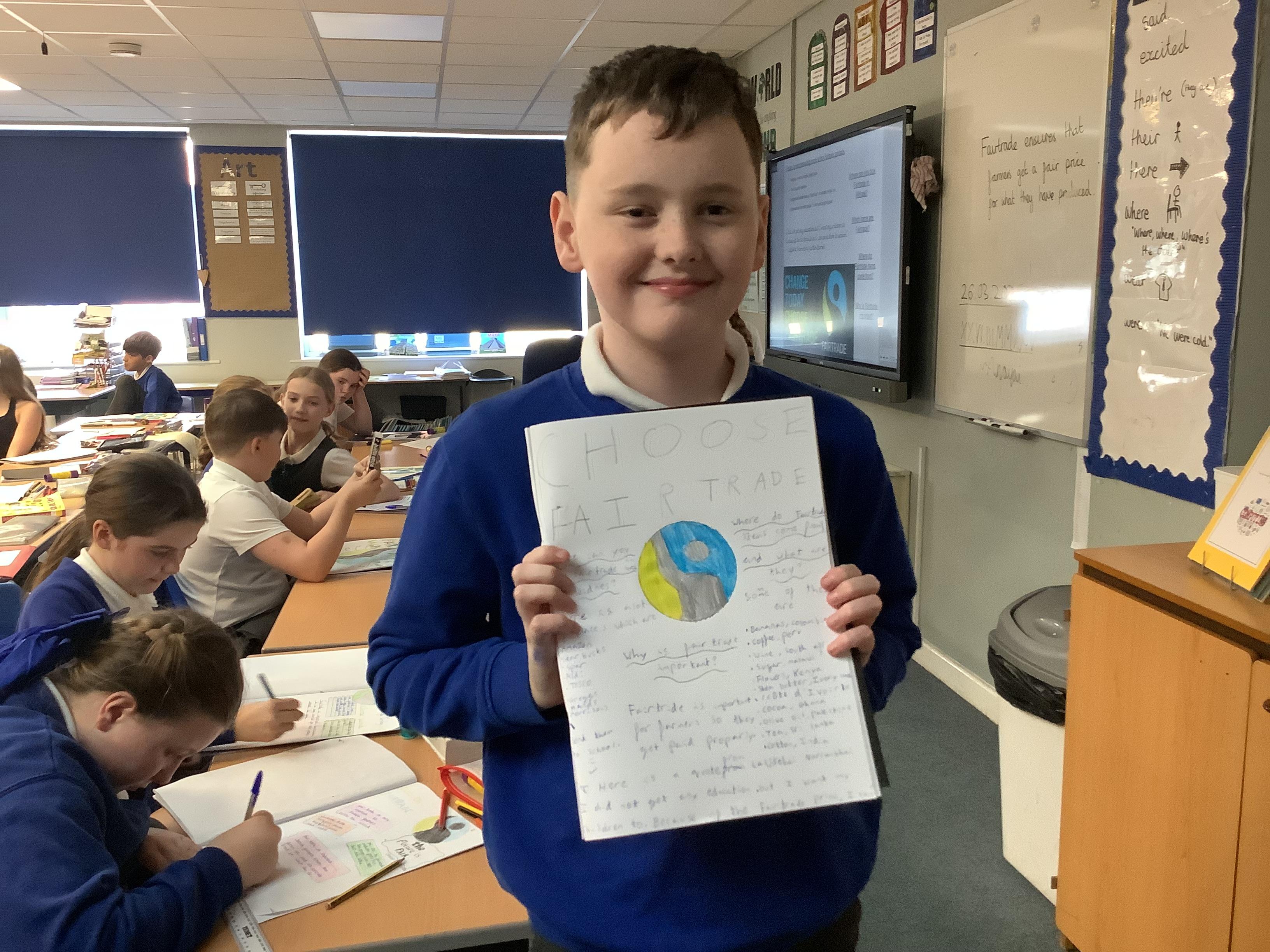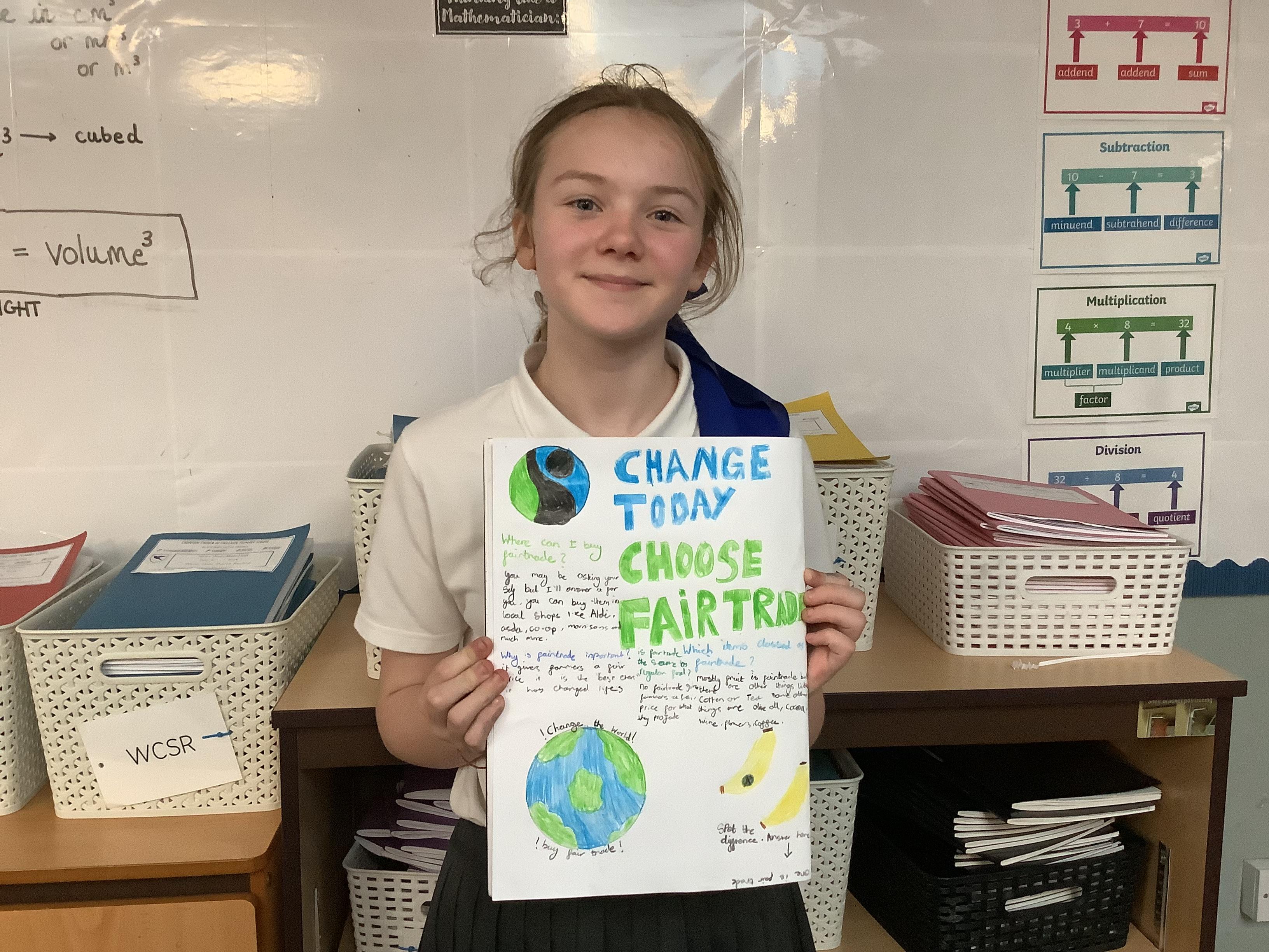 We have done lots of work on fair trade over the last two weeks too… and finished this by making some cakes out of distance products, and selling these at the Mother’s Day event today. Thank you to all of those who came in to spend time with their children.