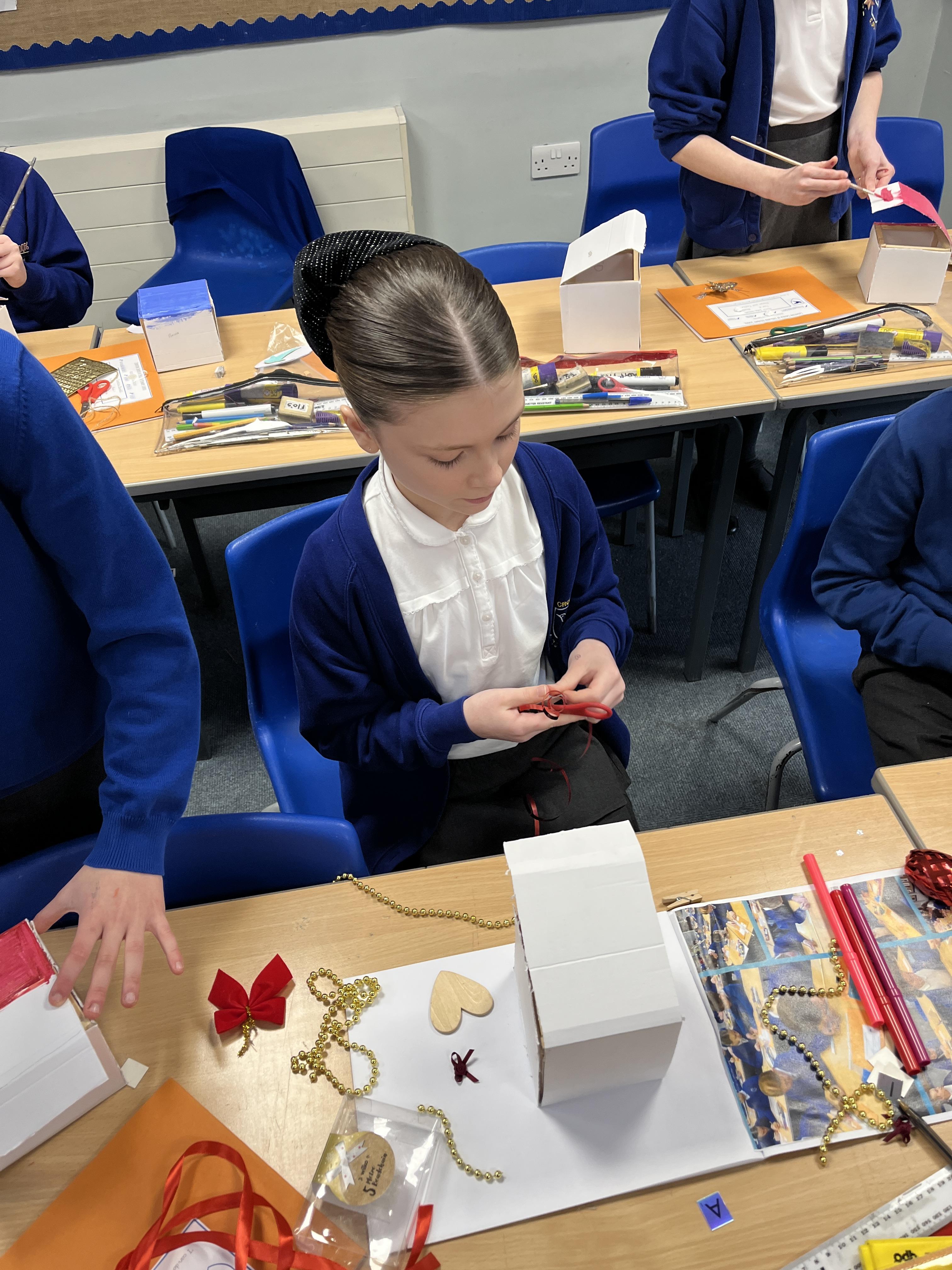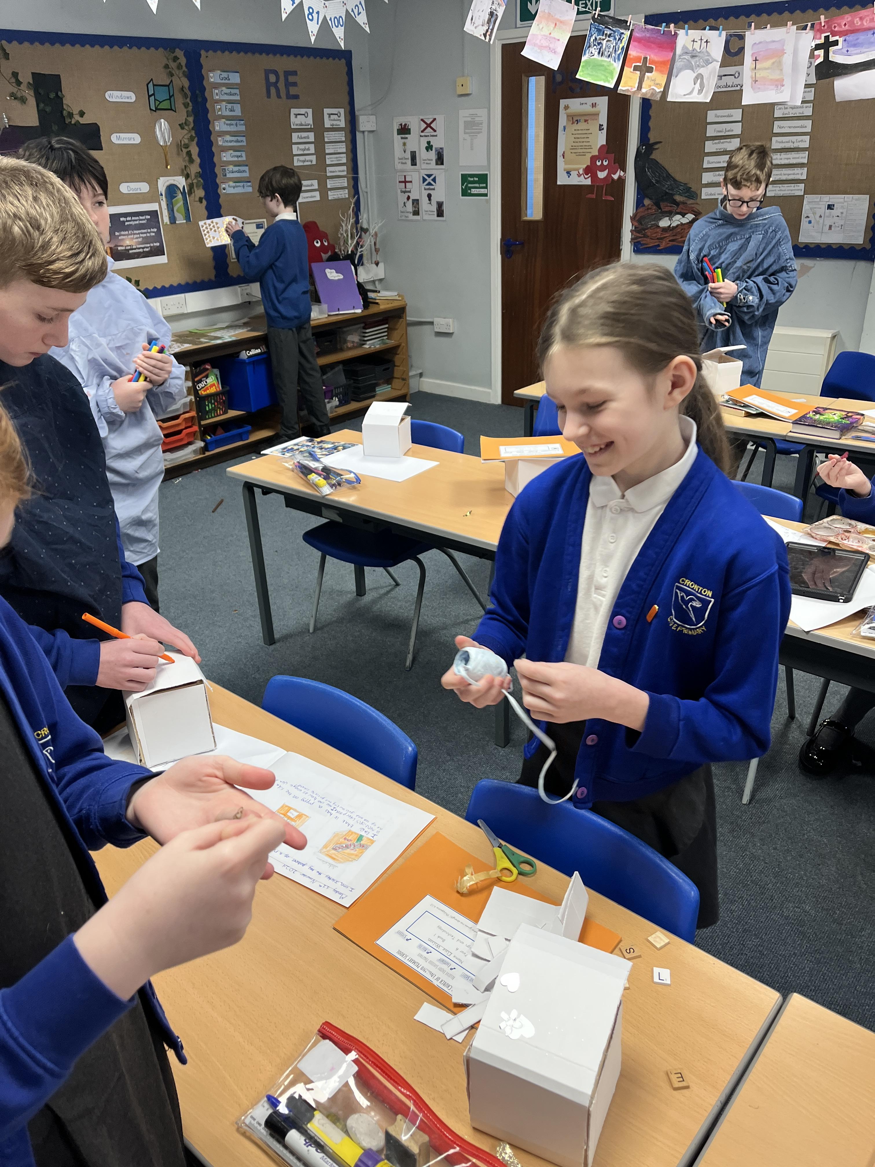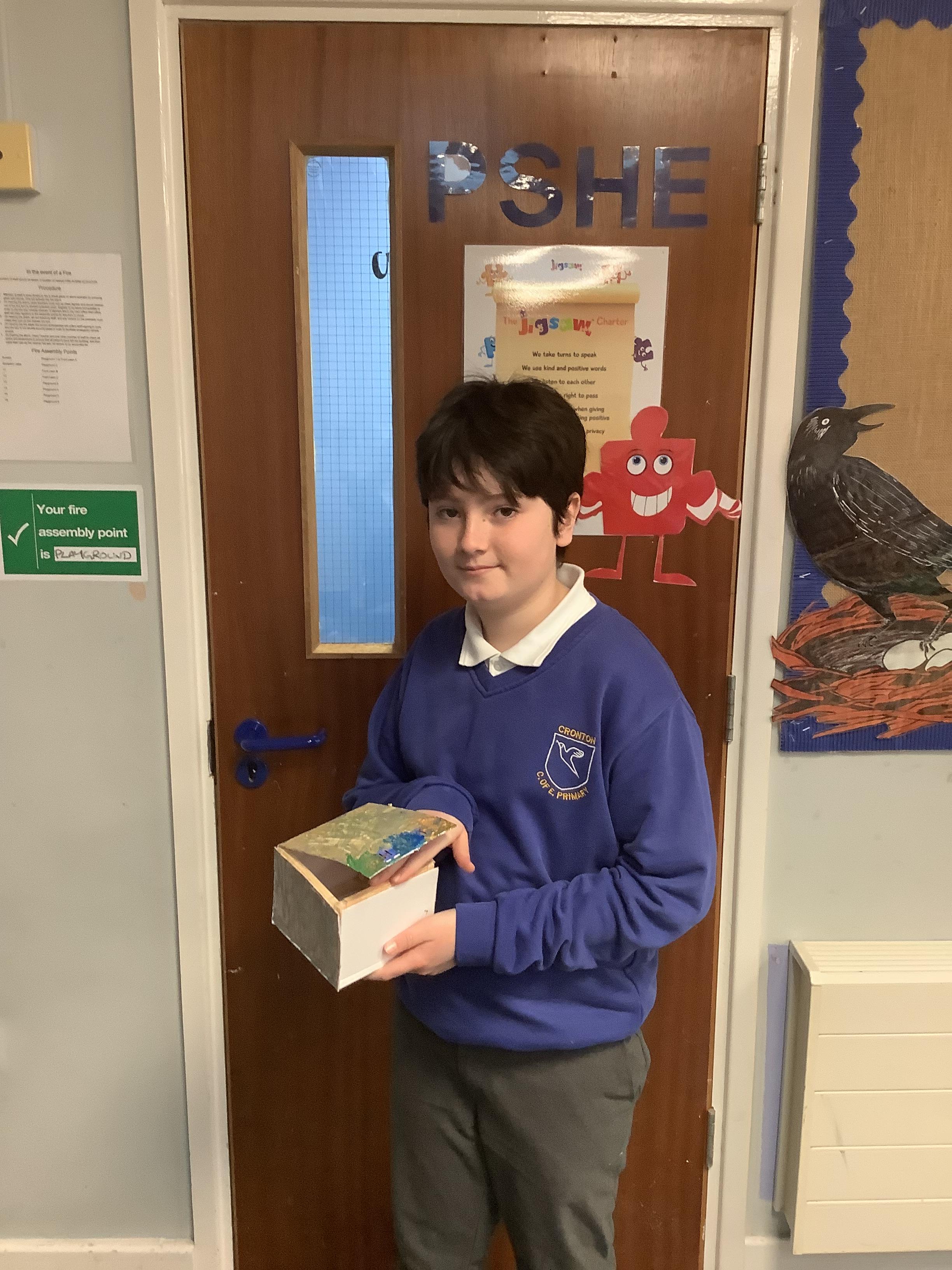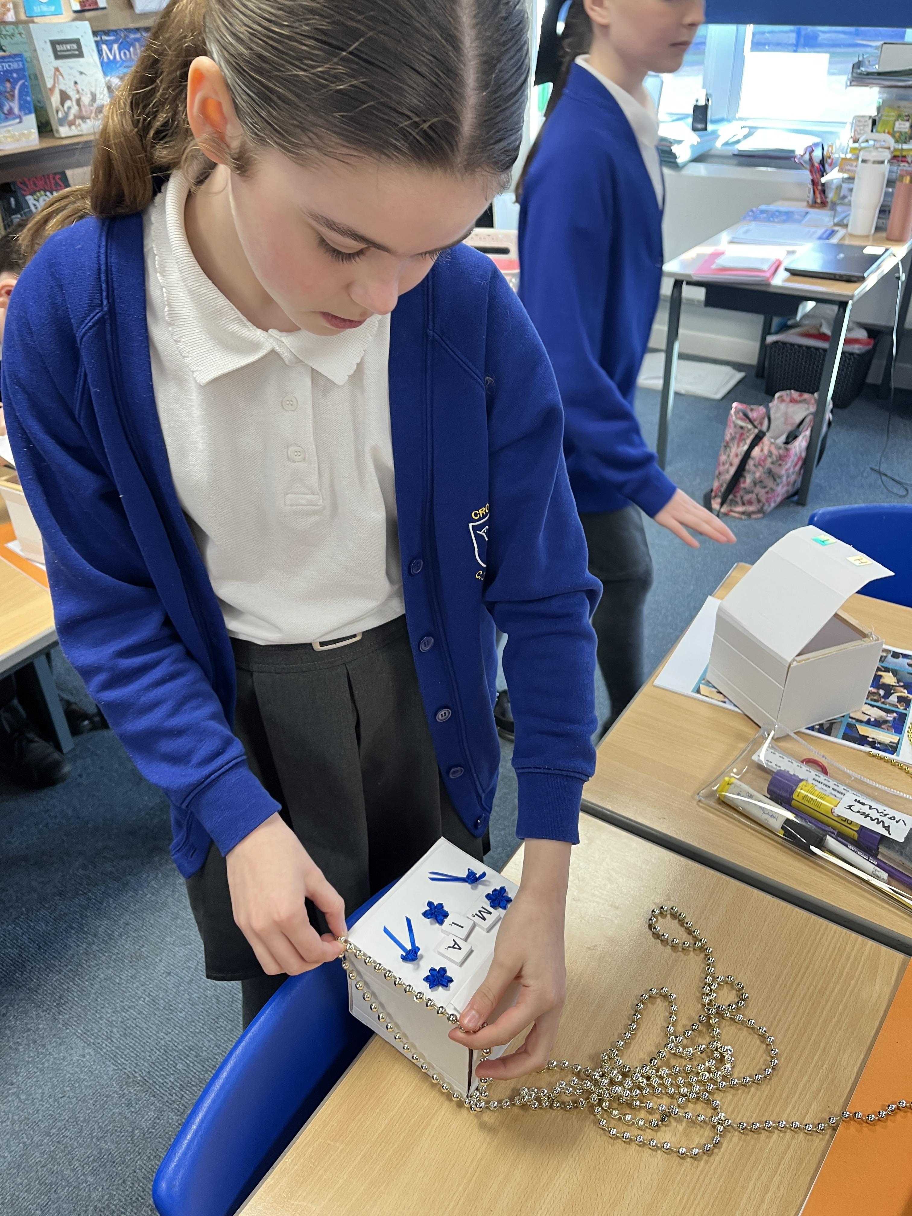 A huge thank you to Mrs Gillies (miracle worker) who helped us to move forwards with our memory boxes in DT. We are now all at the decorating stage... the product is almost finished! The children have worked really hard on these.