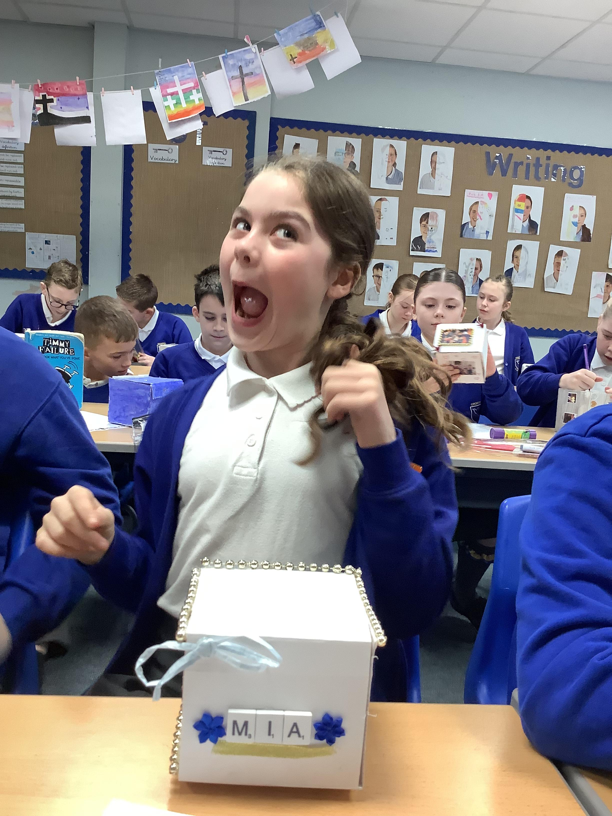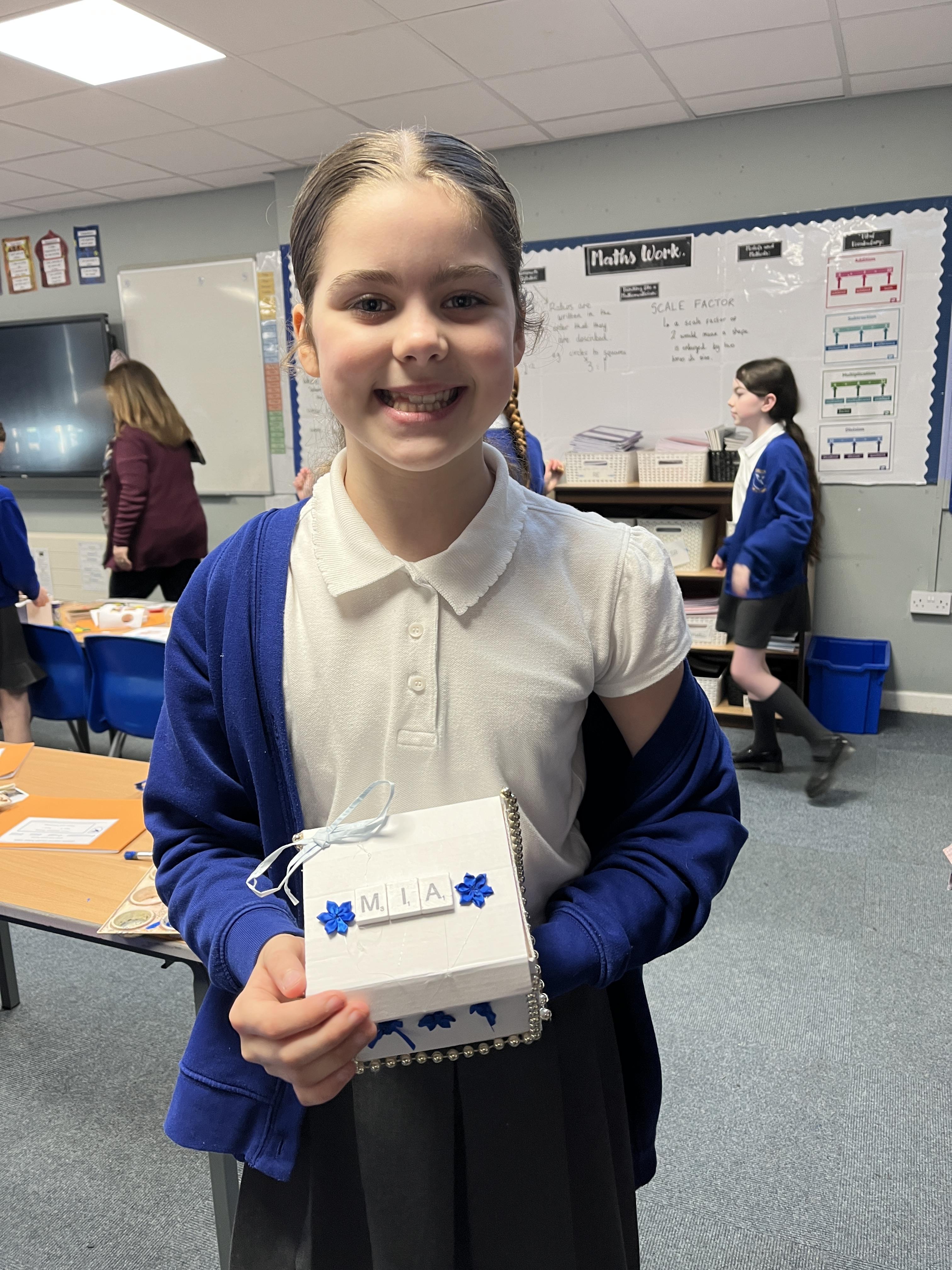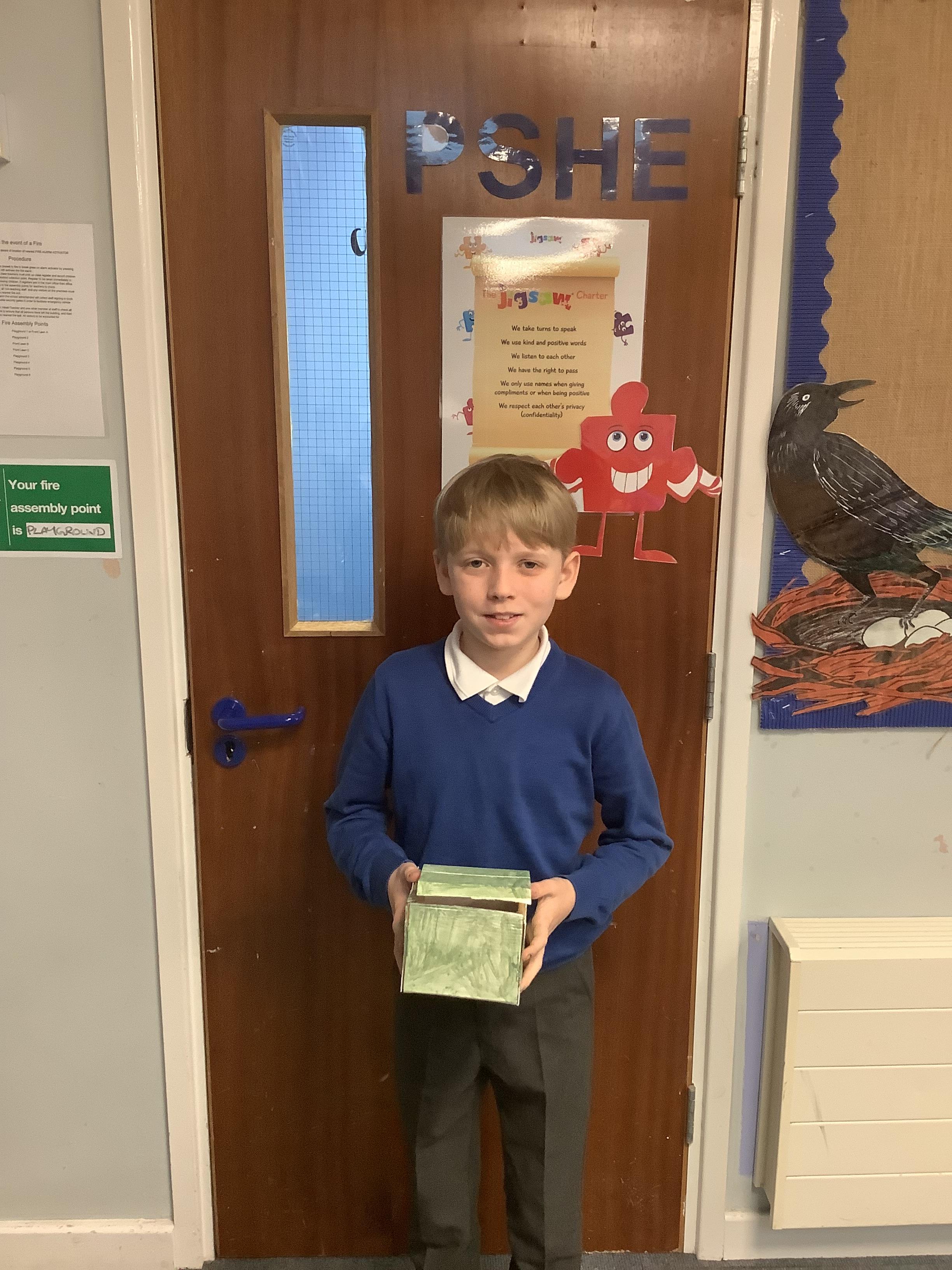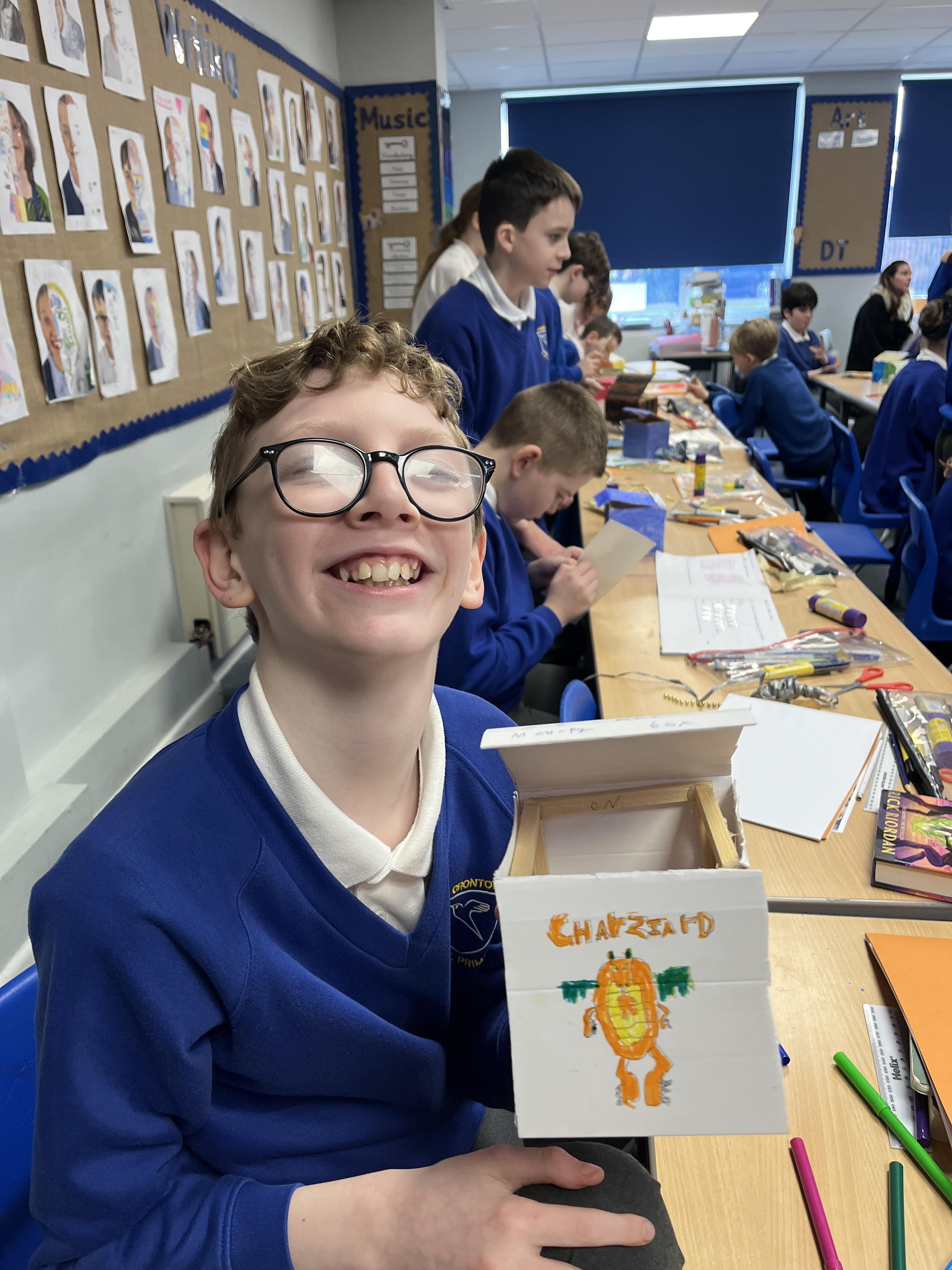 A huge thank you to Mrs Gillies (miracle worker) who helped us to move forwards with our memory boxes in DT. We are now all at the decorating stage... the product is almost finished! The children have worked really hard on these.