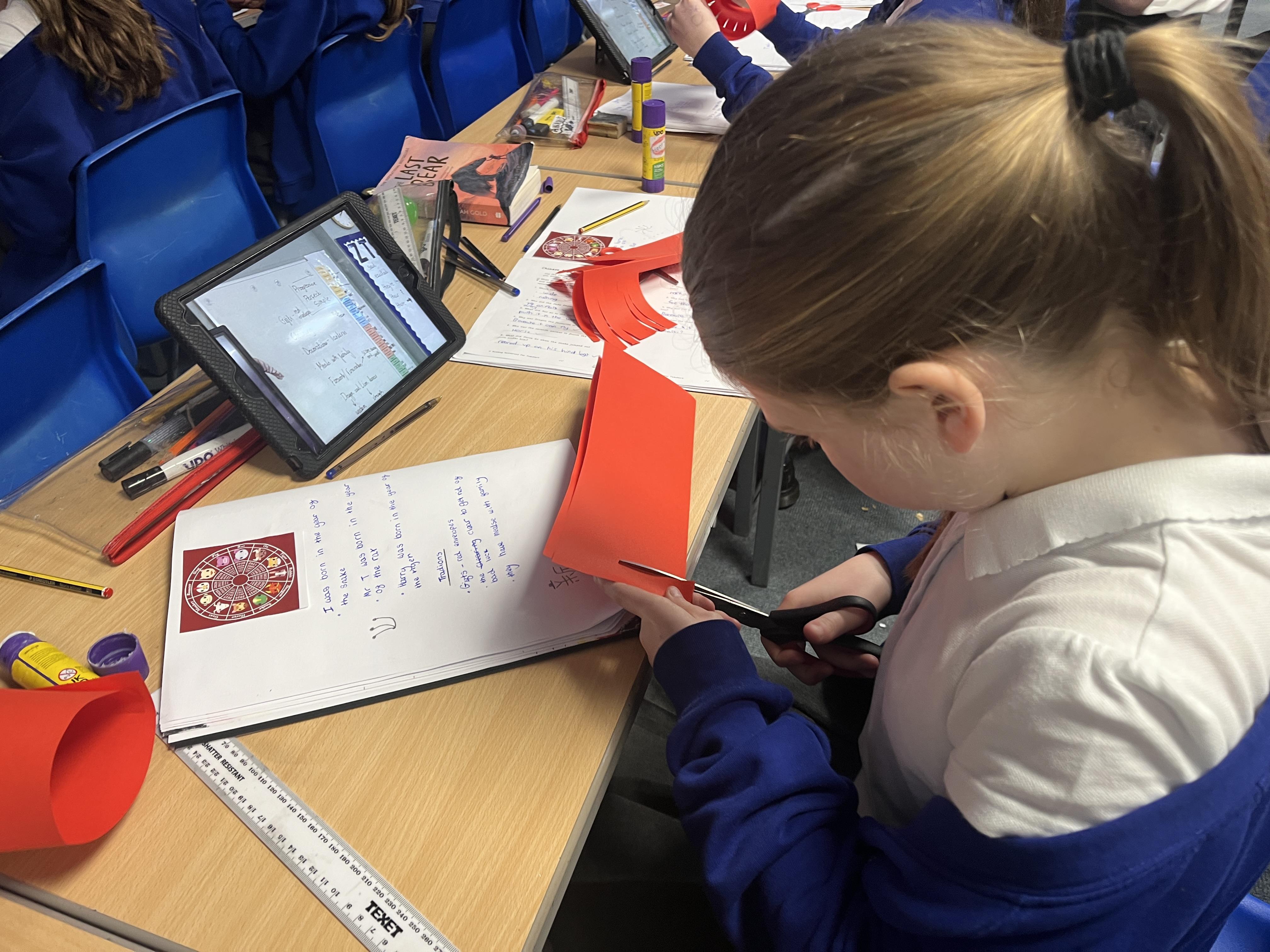 With Wednesday being Chinese New Year, we also spent some time looking at this and had a good chance to investigate which years we were born in, as well as our family members and teachers. The children were overjoyed to be able write “Mr Tunstall is a rat” in their book… they may laugh but we year of the rat folk did win the great race! We also made Chinese paper lanterns for you to put up in your own homes.