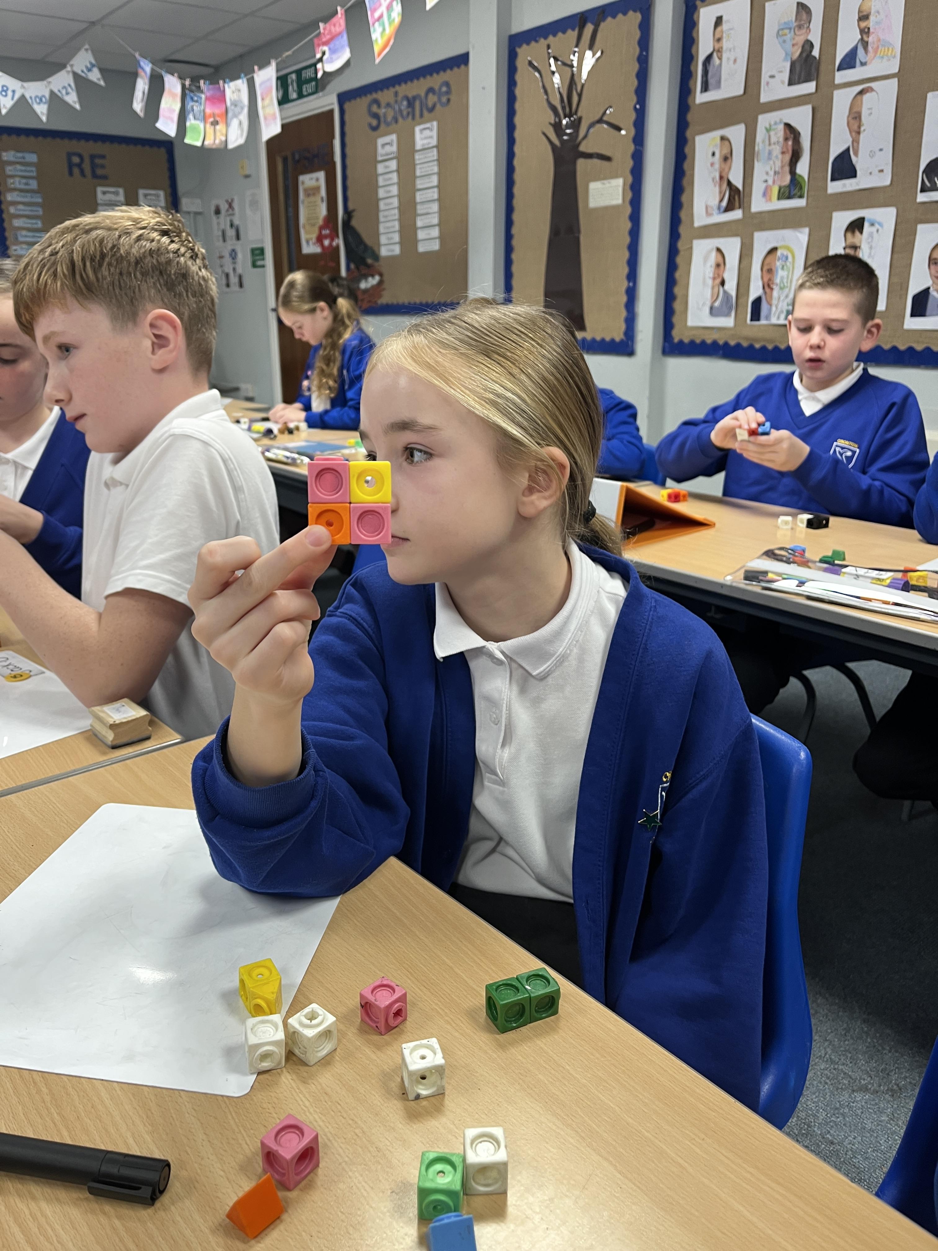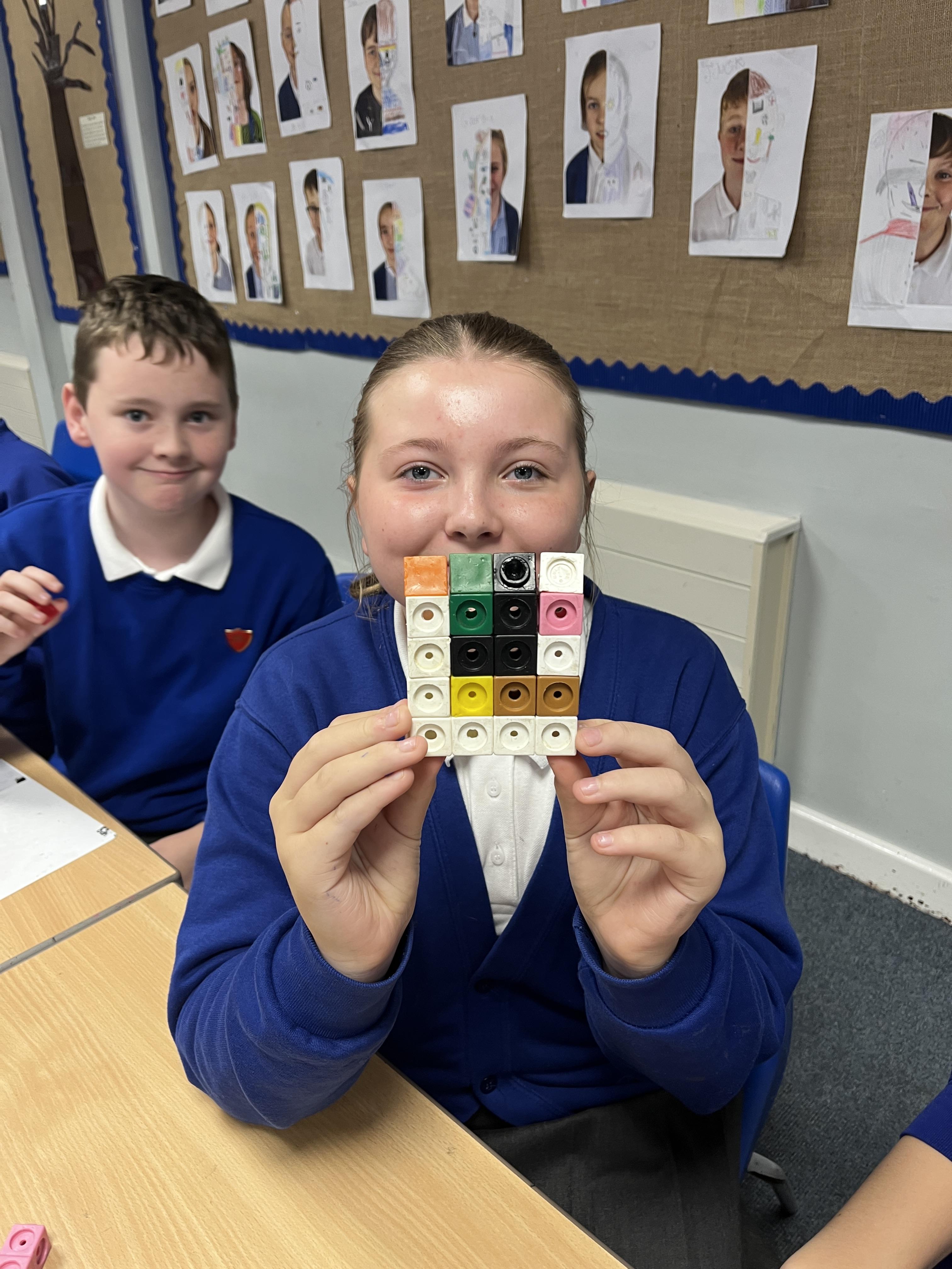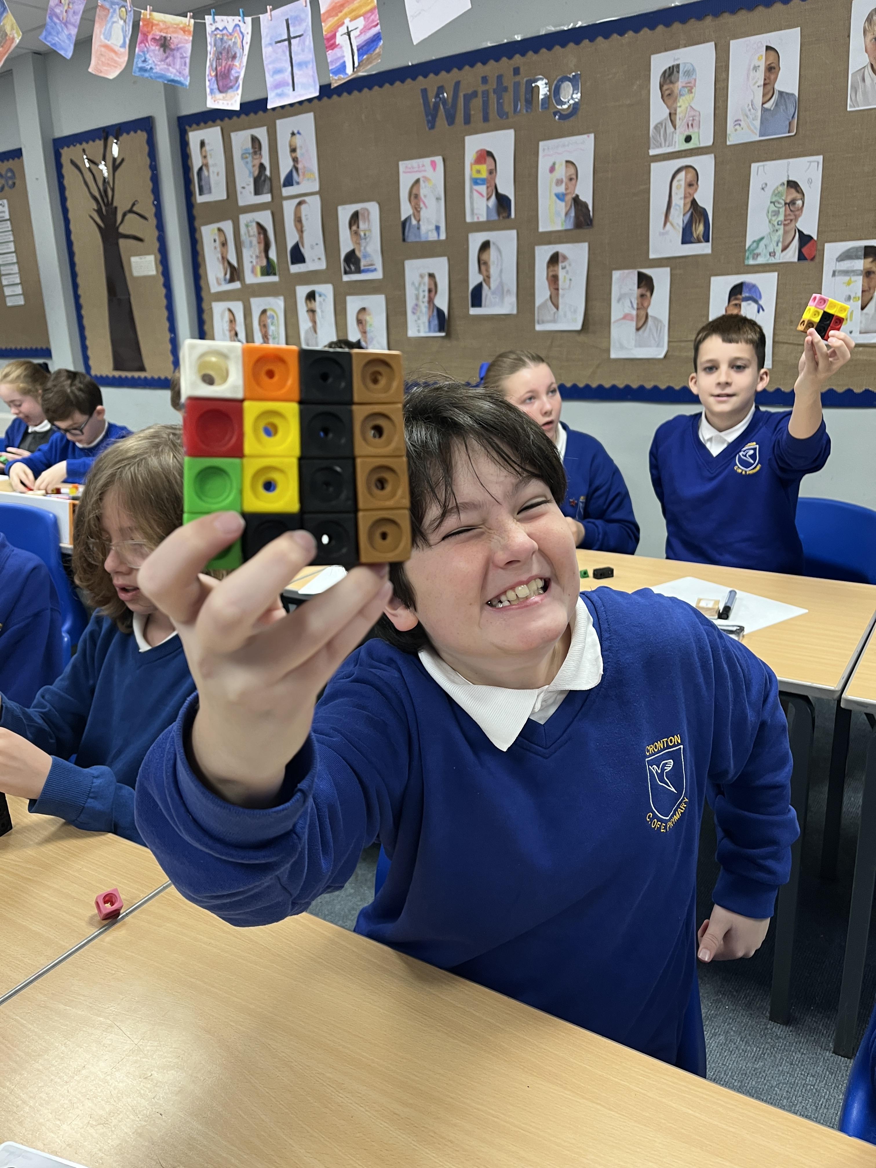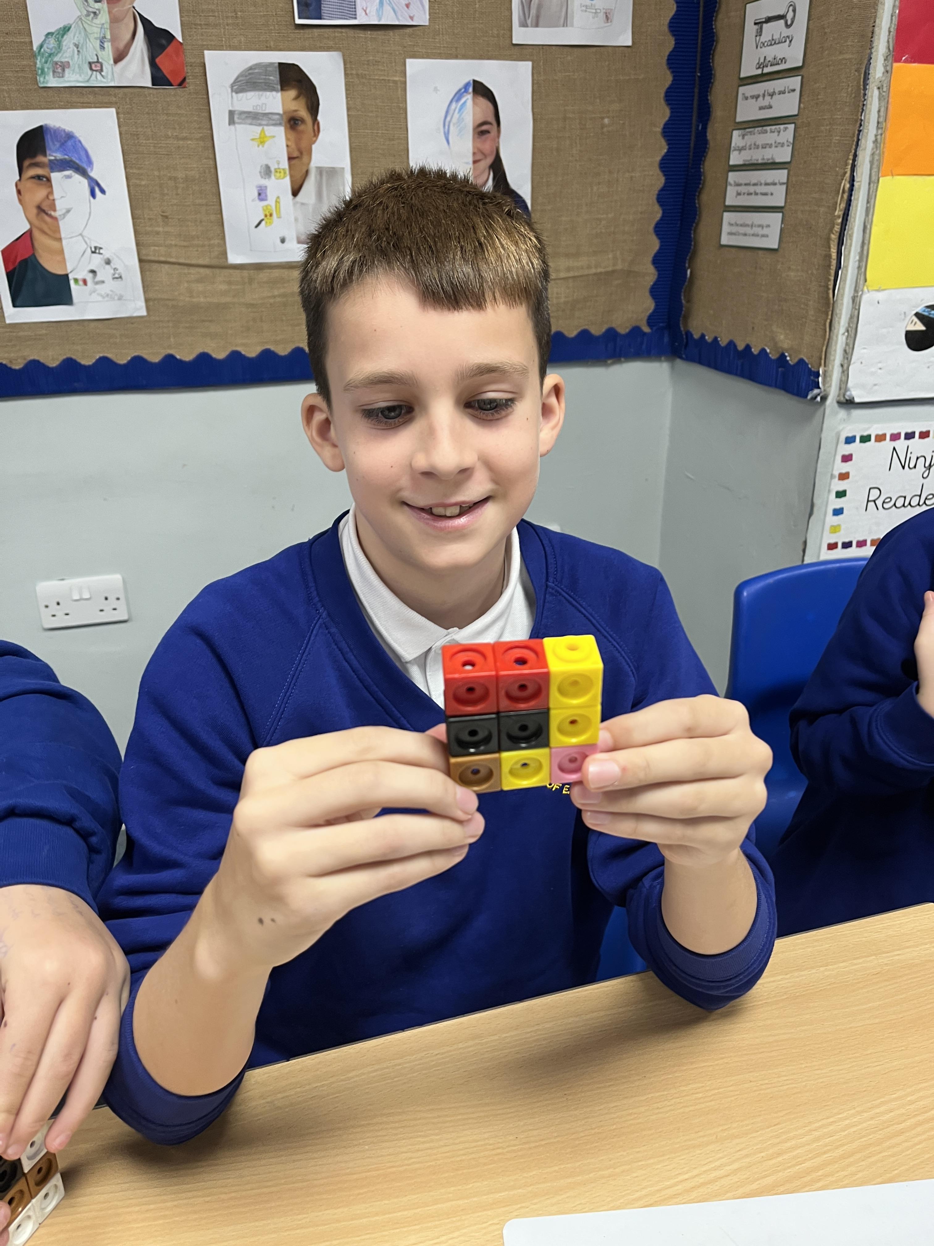 In maths, we have looked at factors, multiples and long multiplication. We also looked at squared and cubed number and children enjoyed making these using cubes.