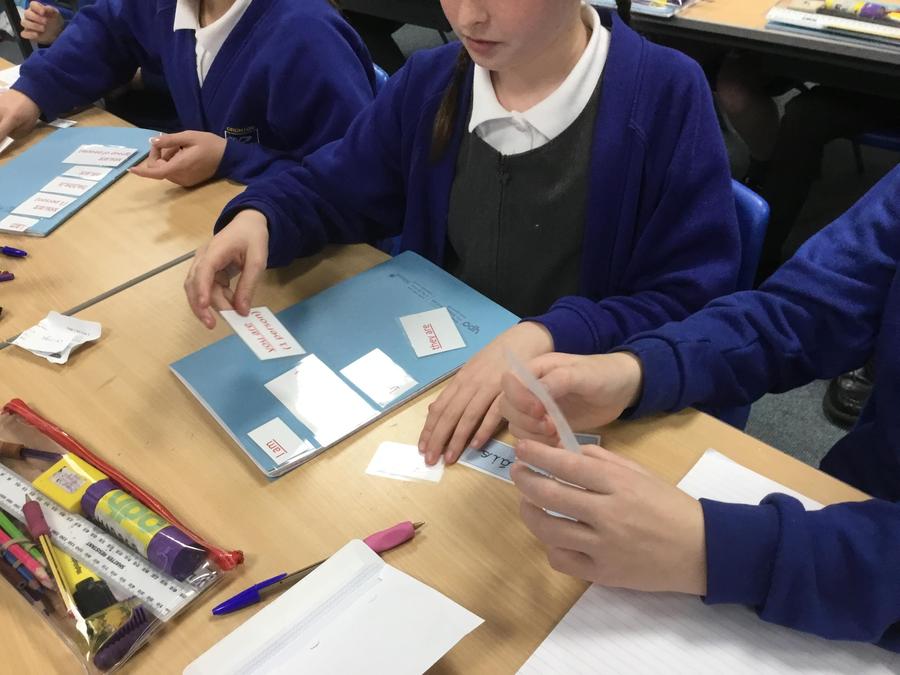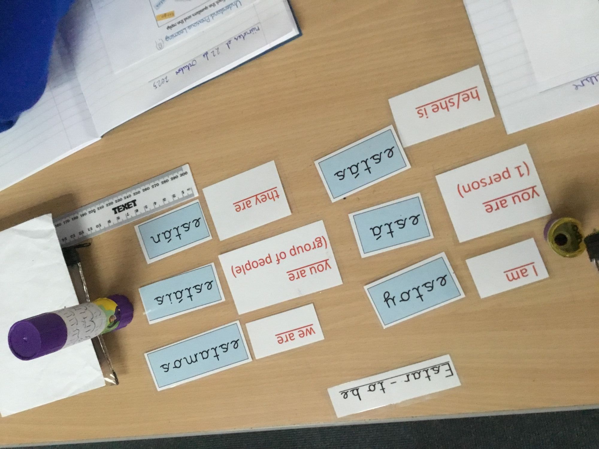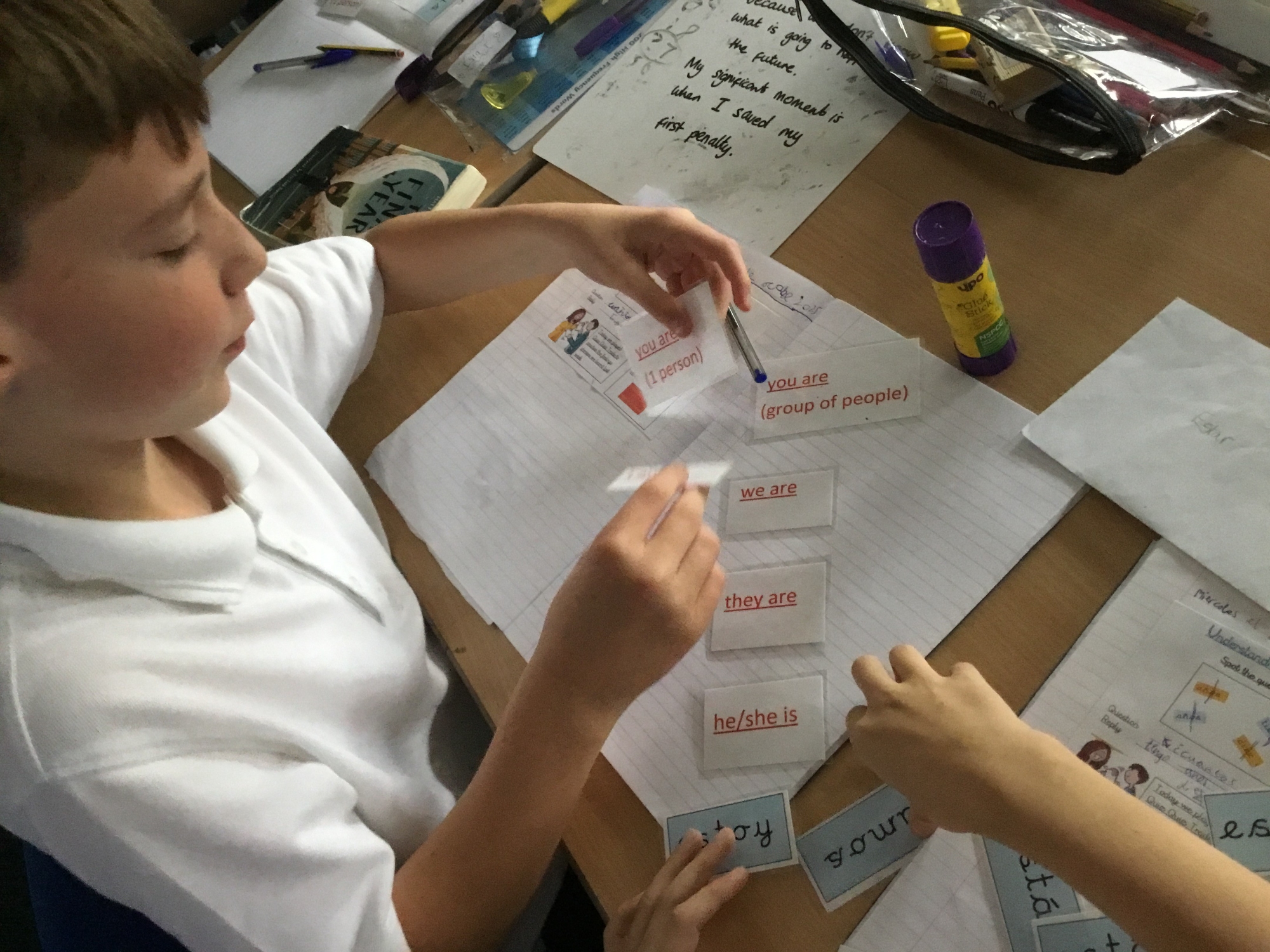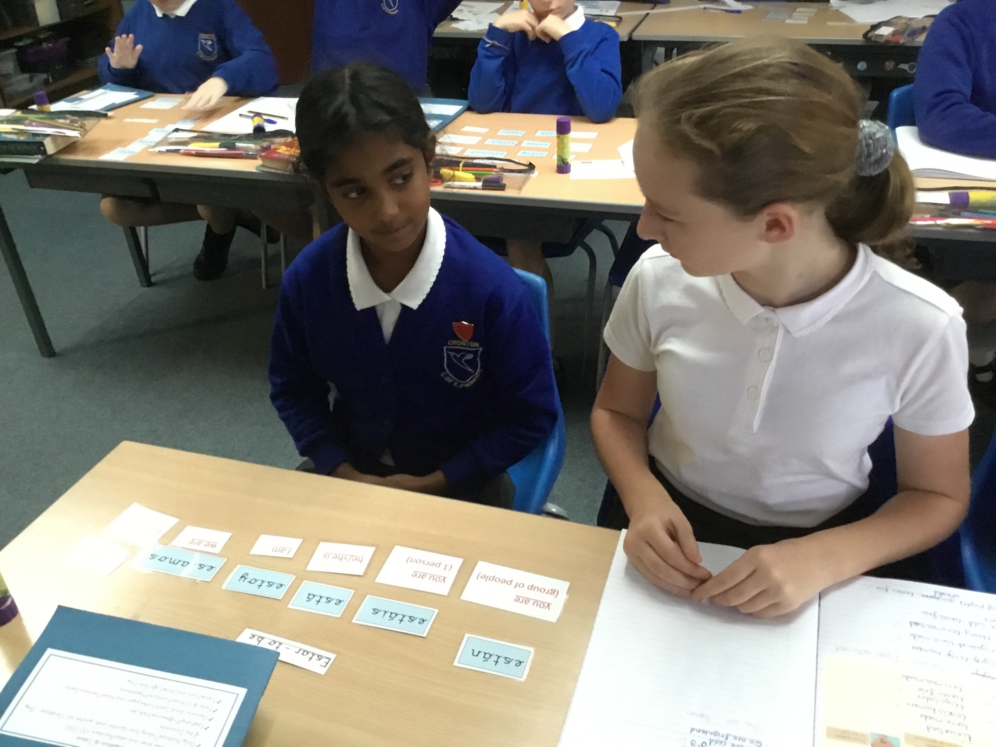 Today, we have been pattern seeking.  We sorted lots of different professions into groups, according to their spelling.  Each group has its own rule for masculine and feminine nouns.