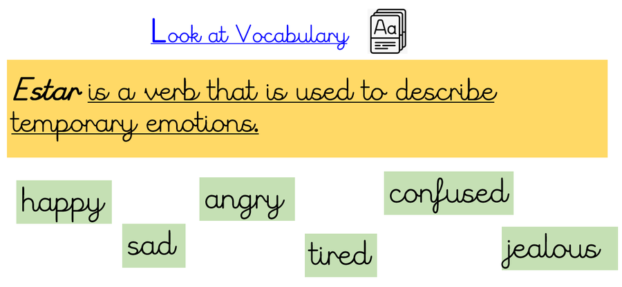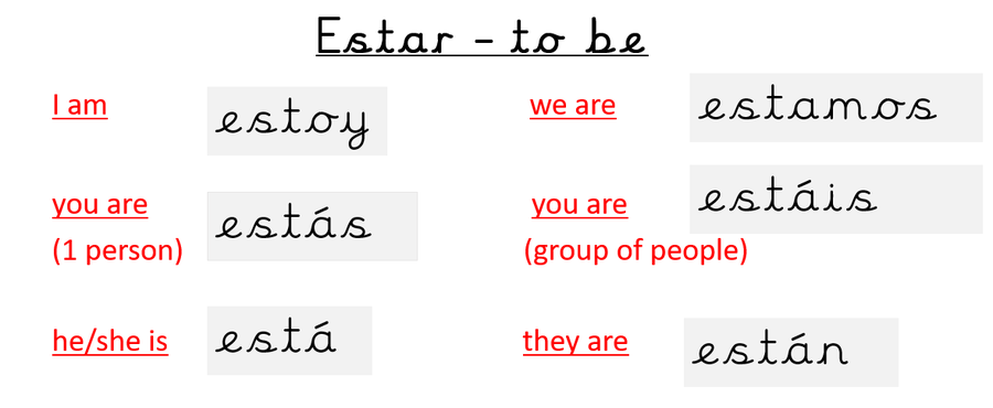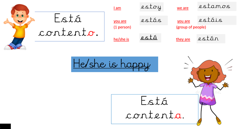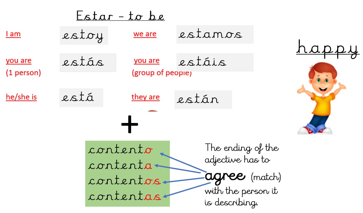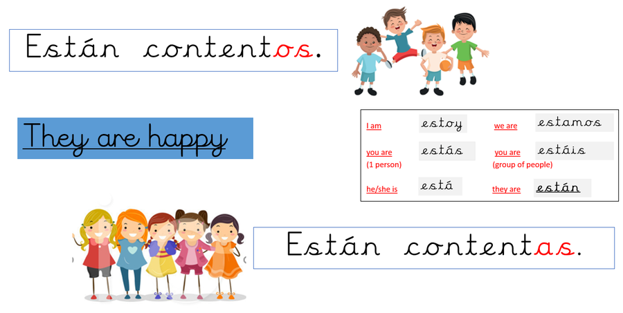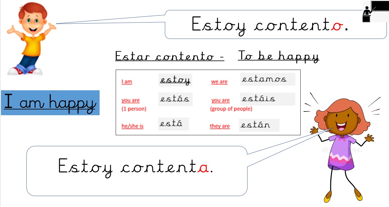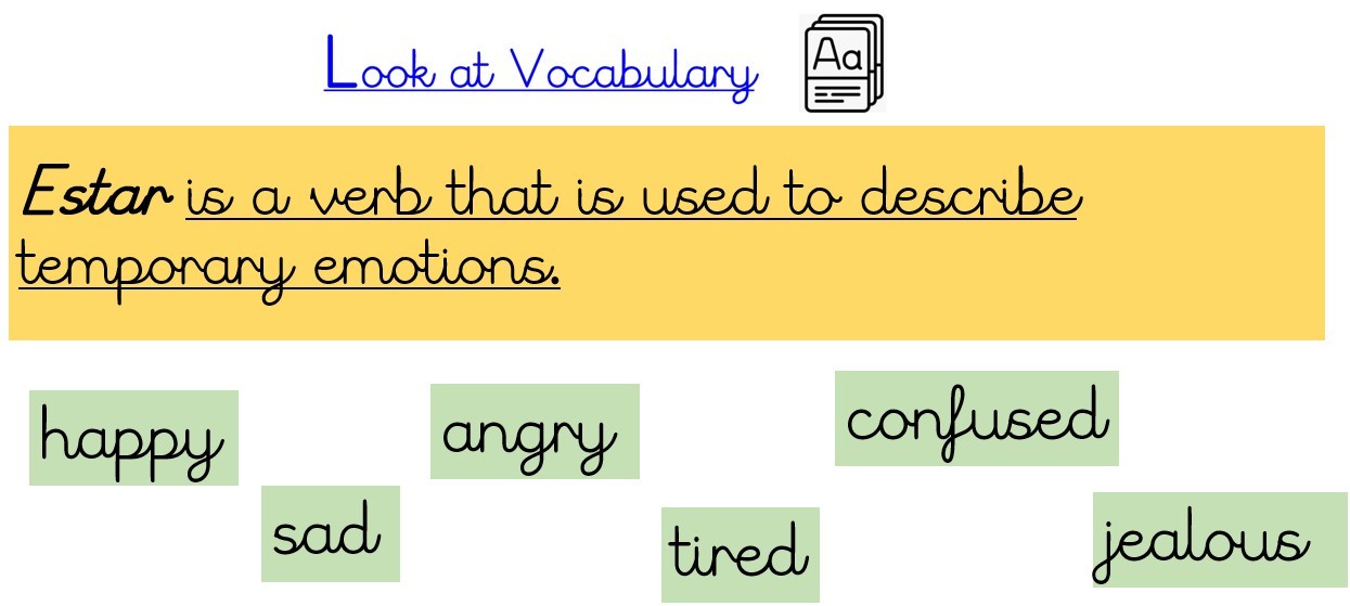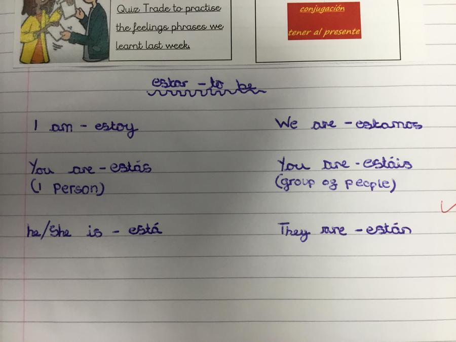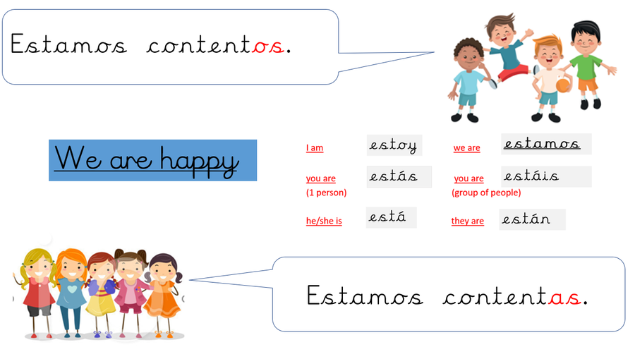 Today, we learnt how to use different adjectives with the verb estar  to describe how different groups of people are feeling.