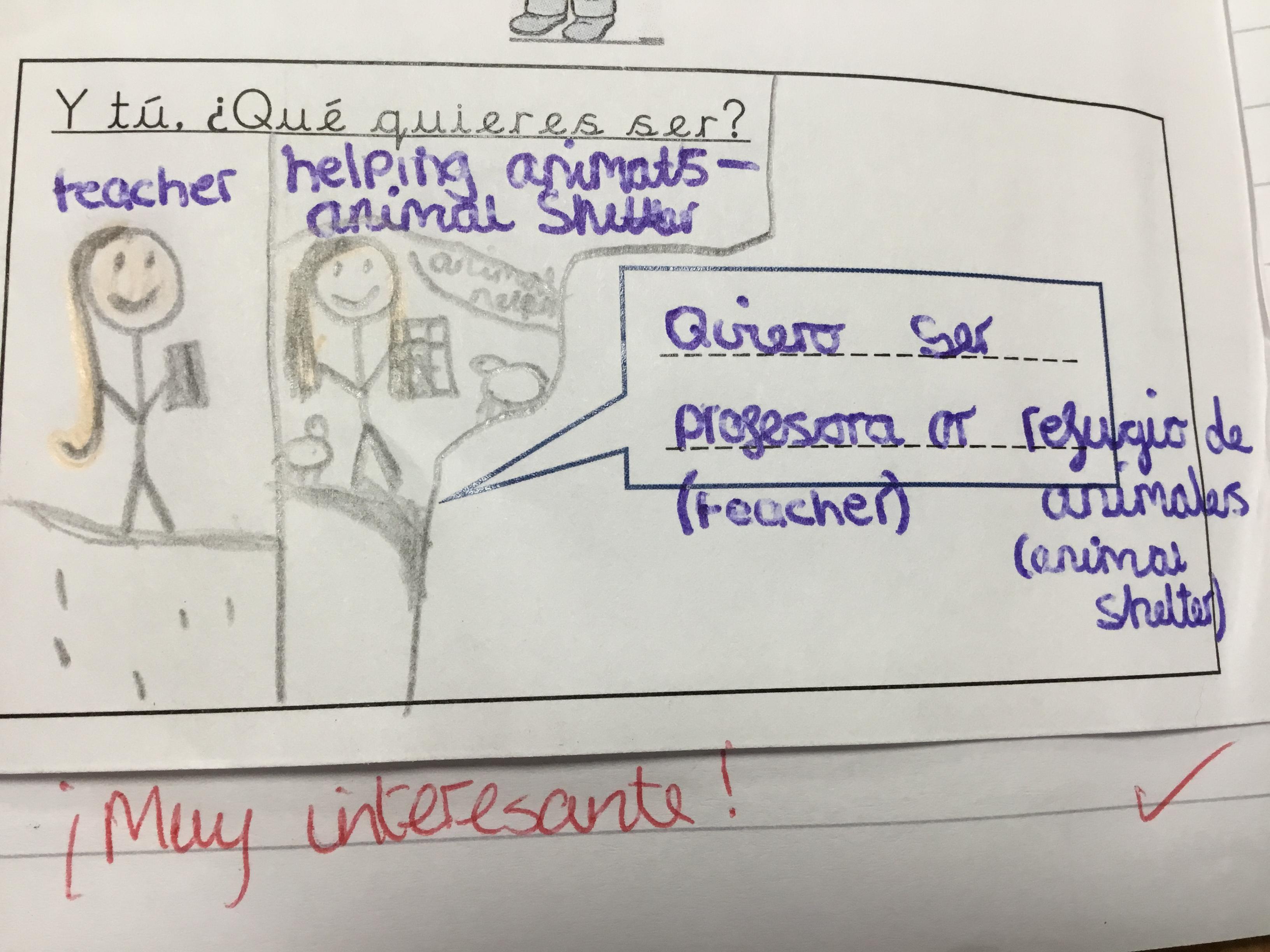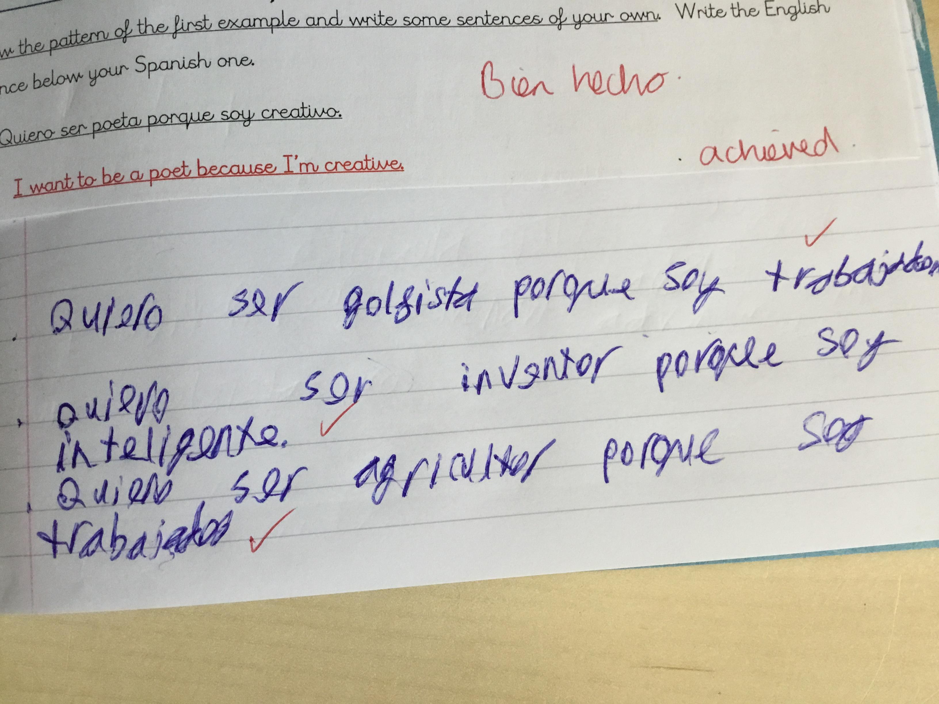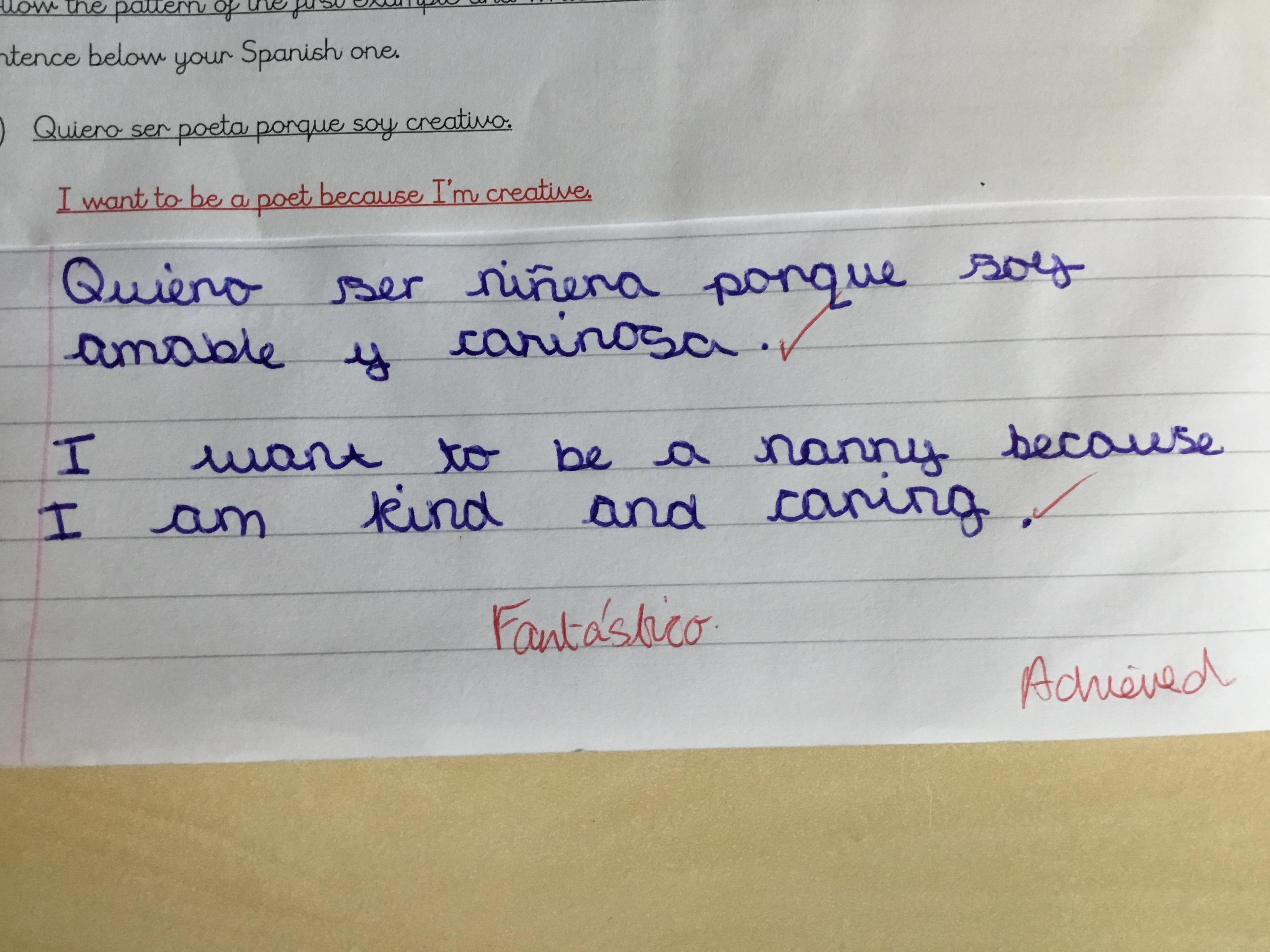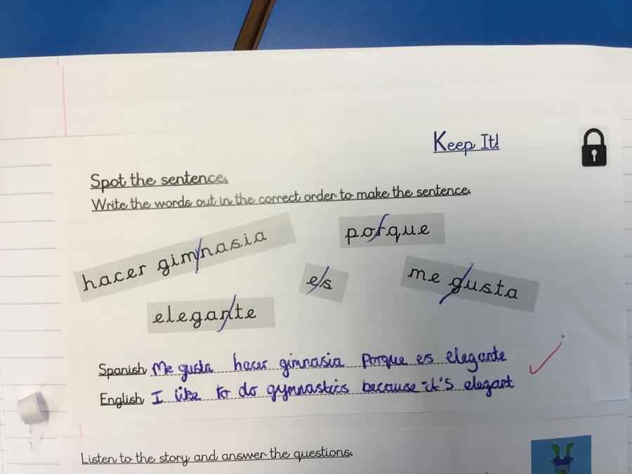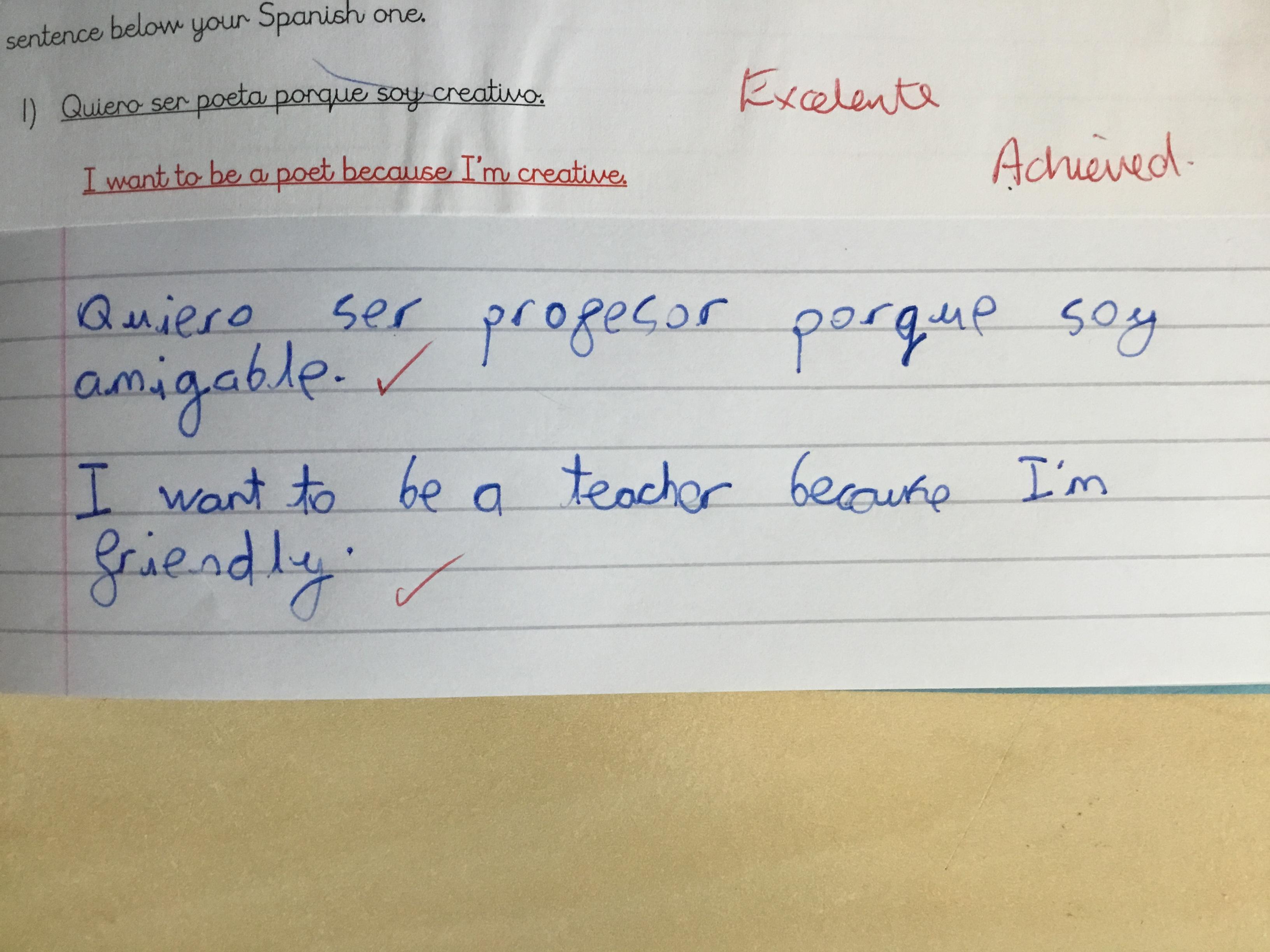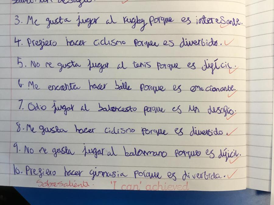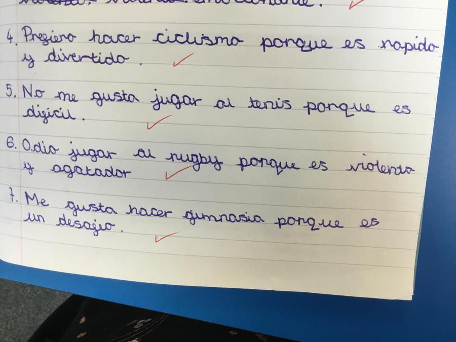 This week, we put everything we have learnt this term together in a longer sentence, using the word because. (porque).
