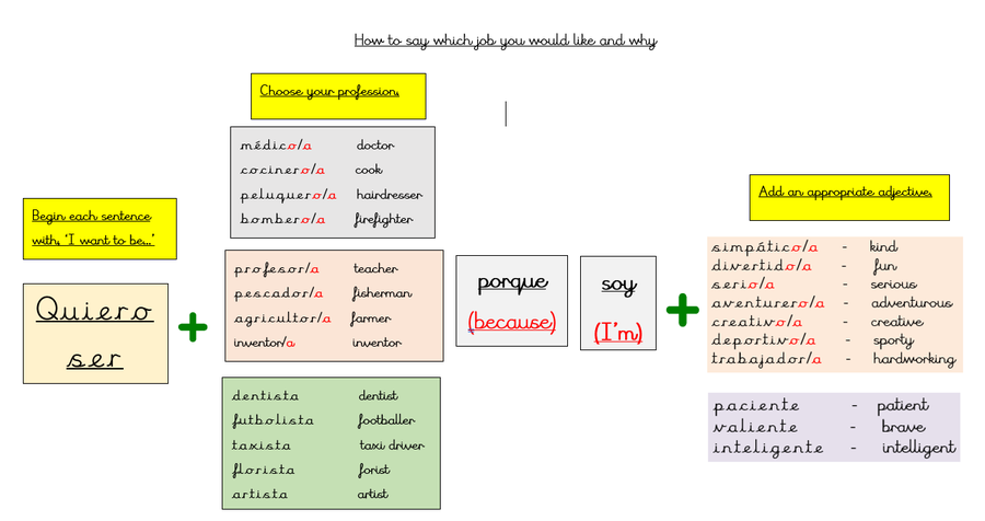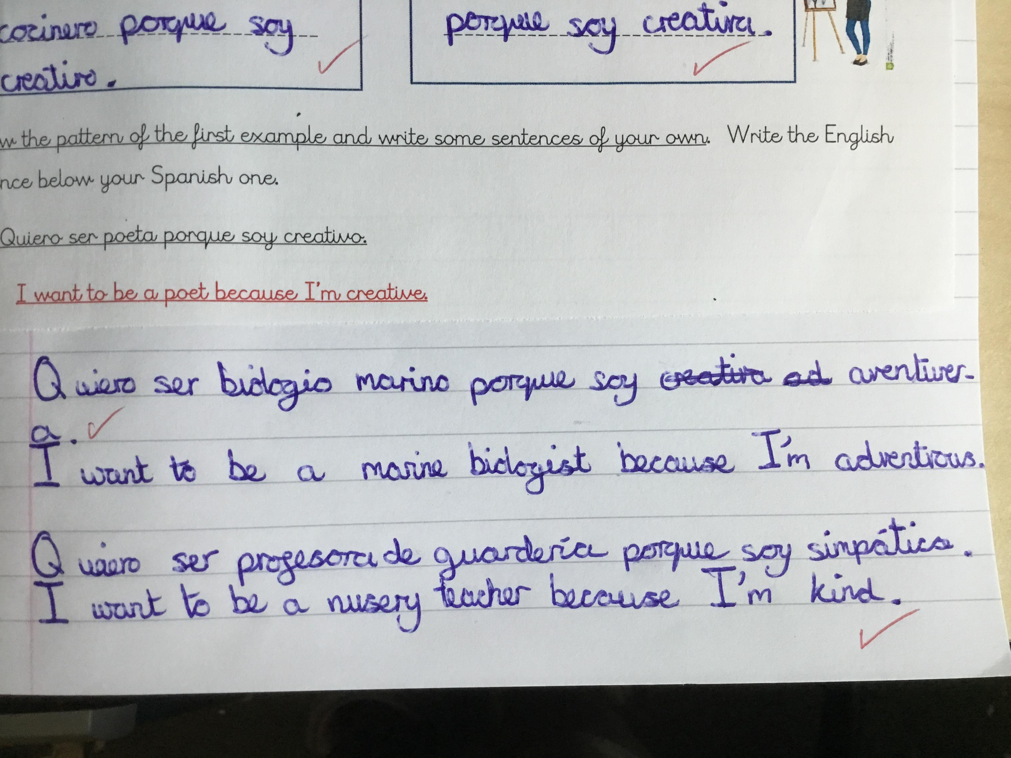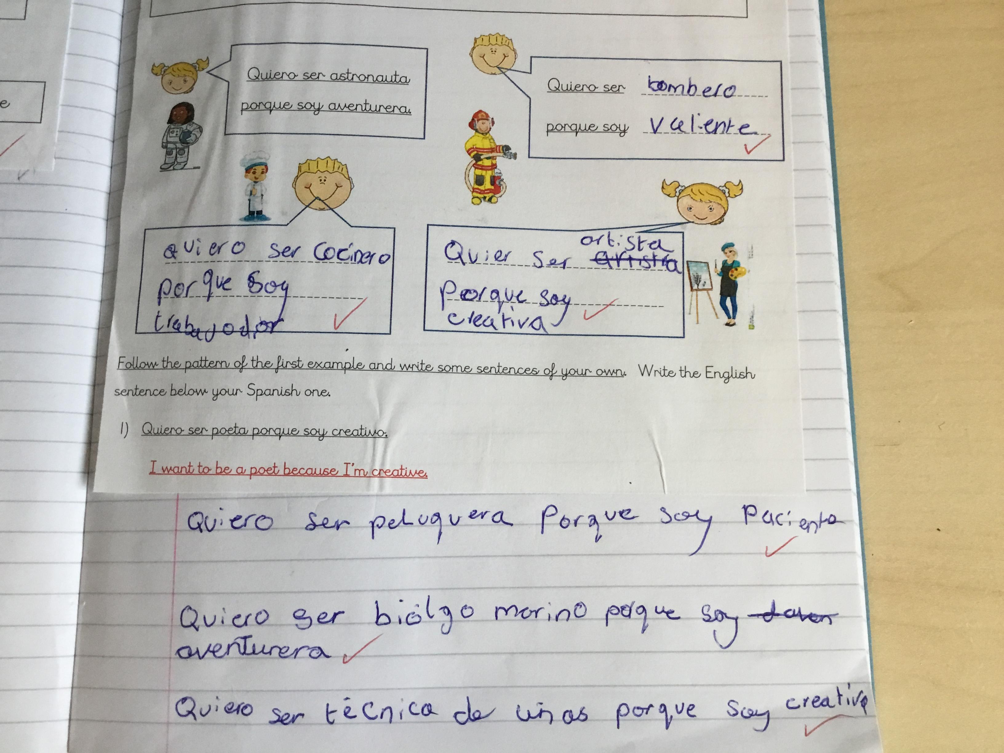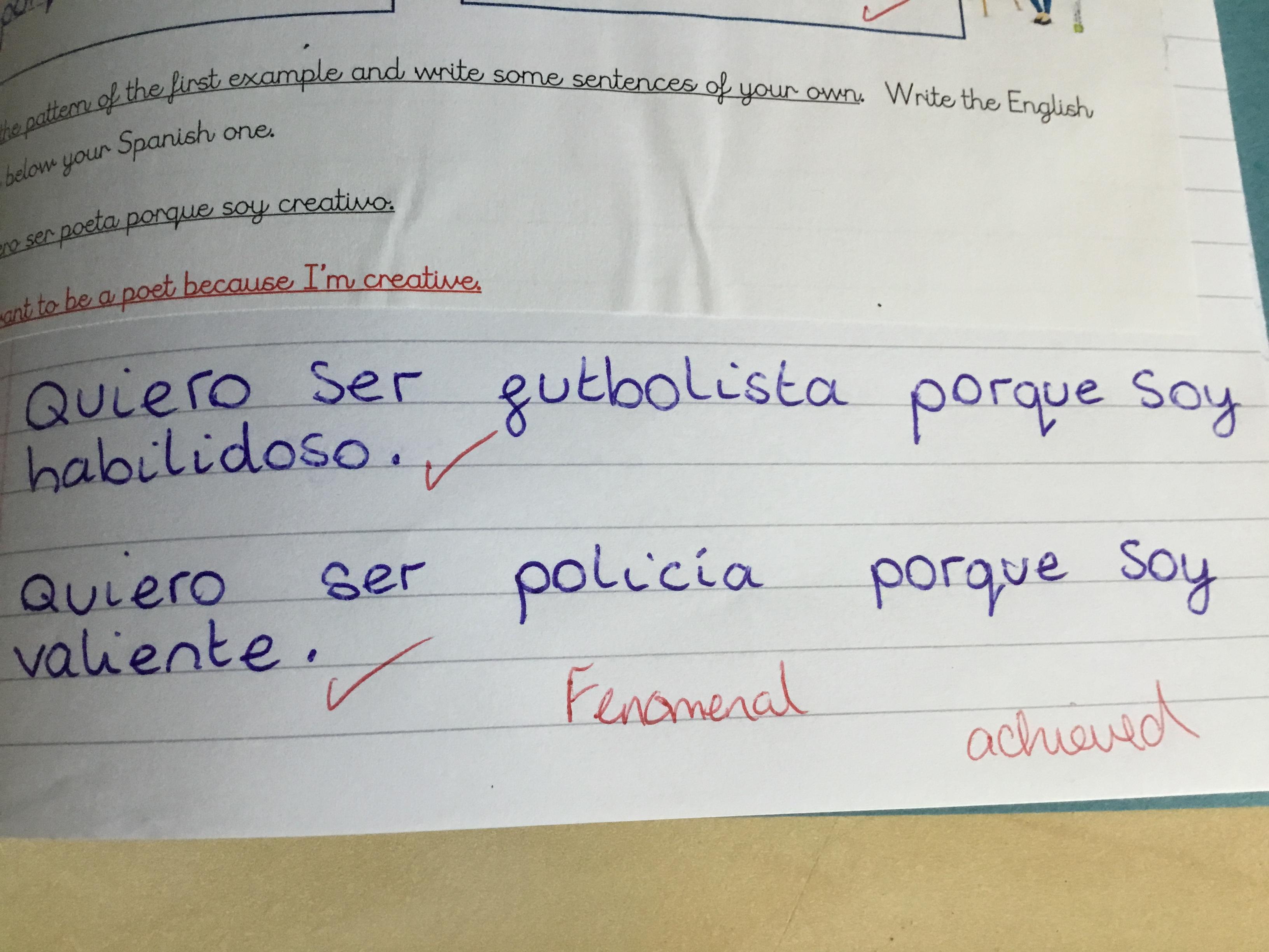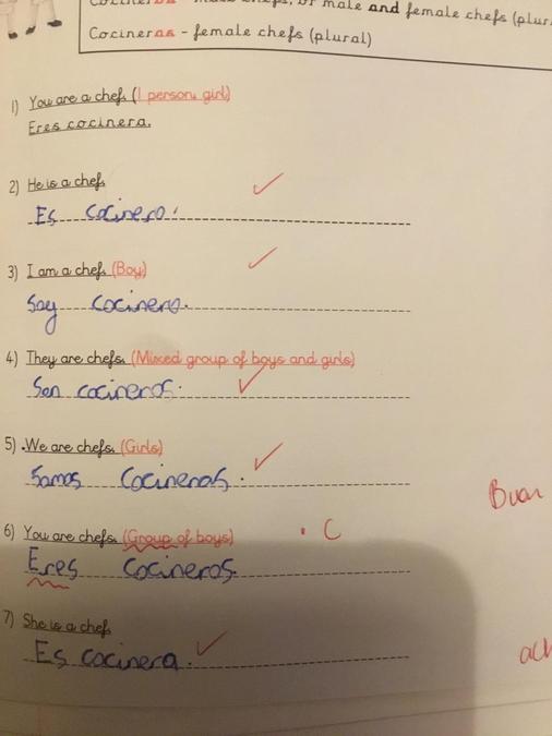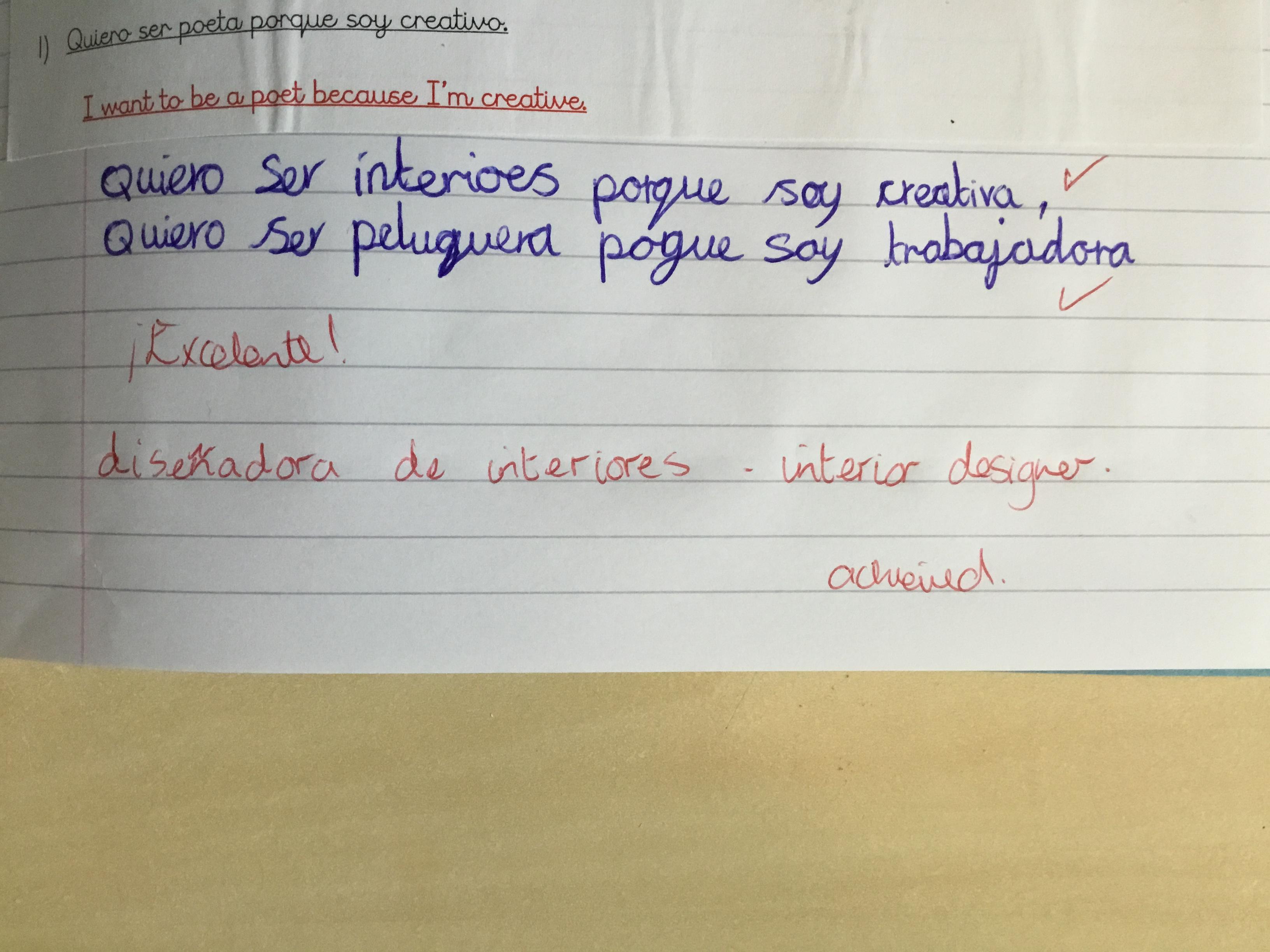 This week, we put everything we have learnt this term together in a longer sentence, using the word because. (porque).