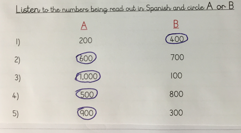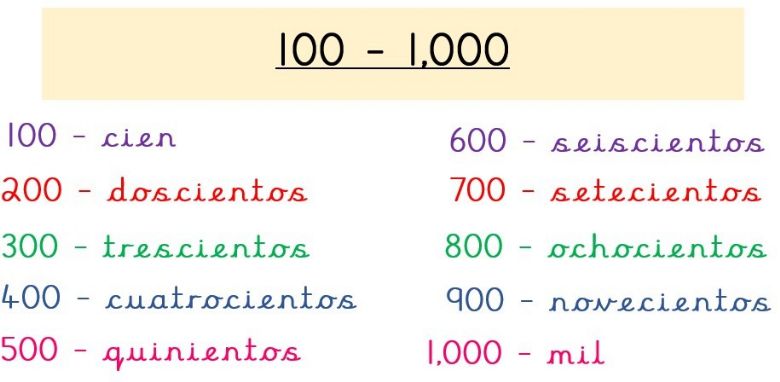 Today in Spanish, we counted in multiples of 100 up to 1,000.