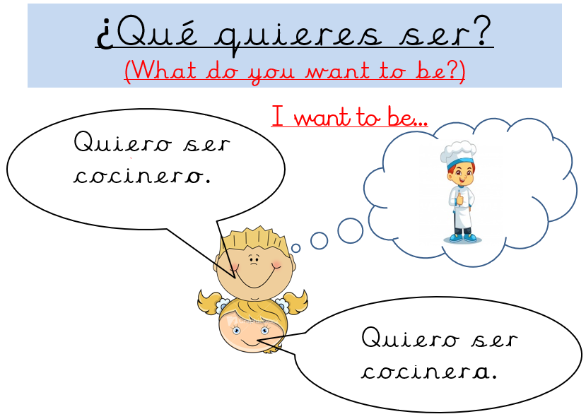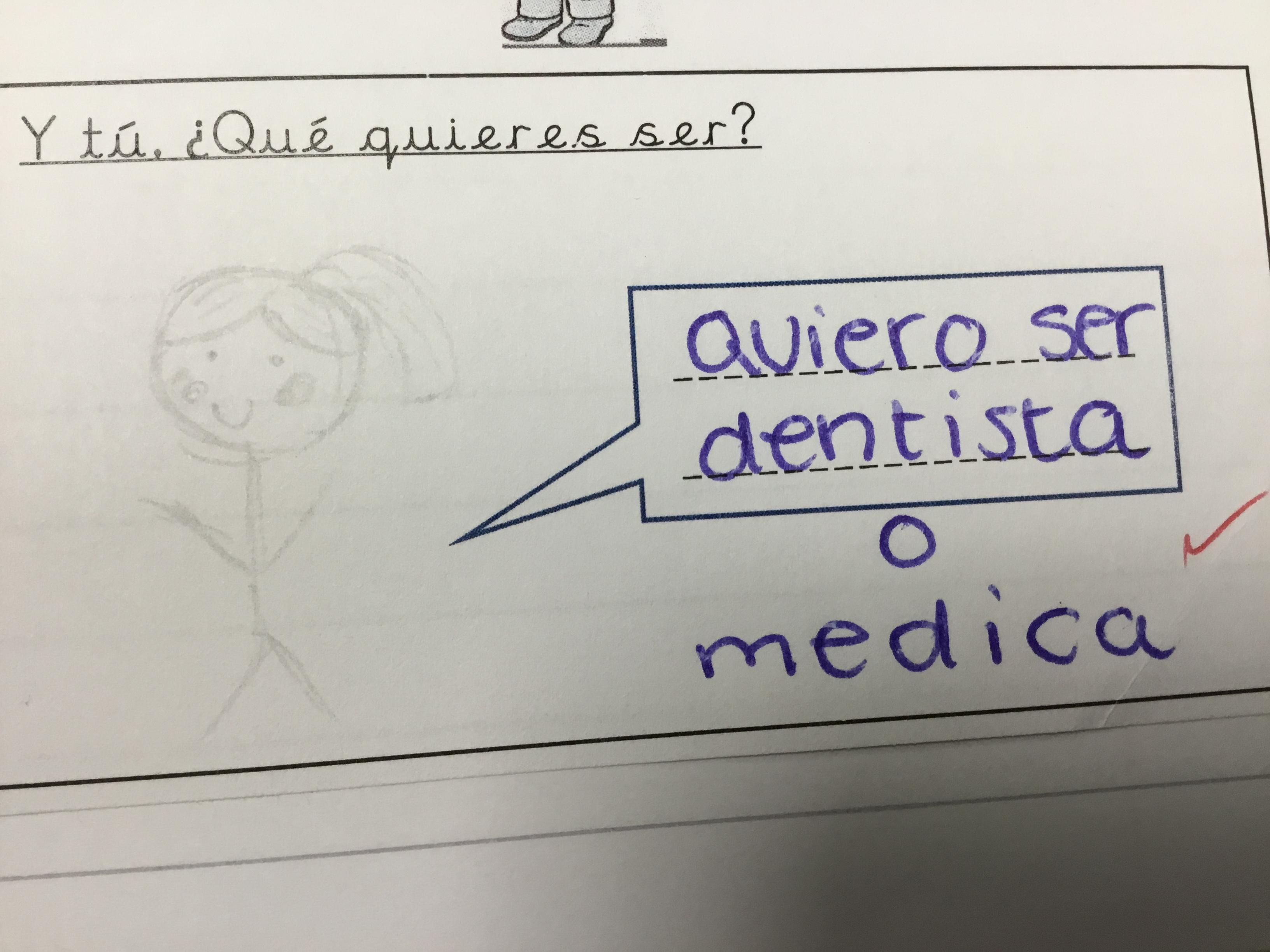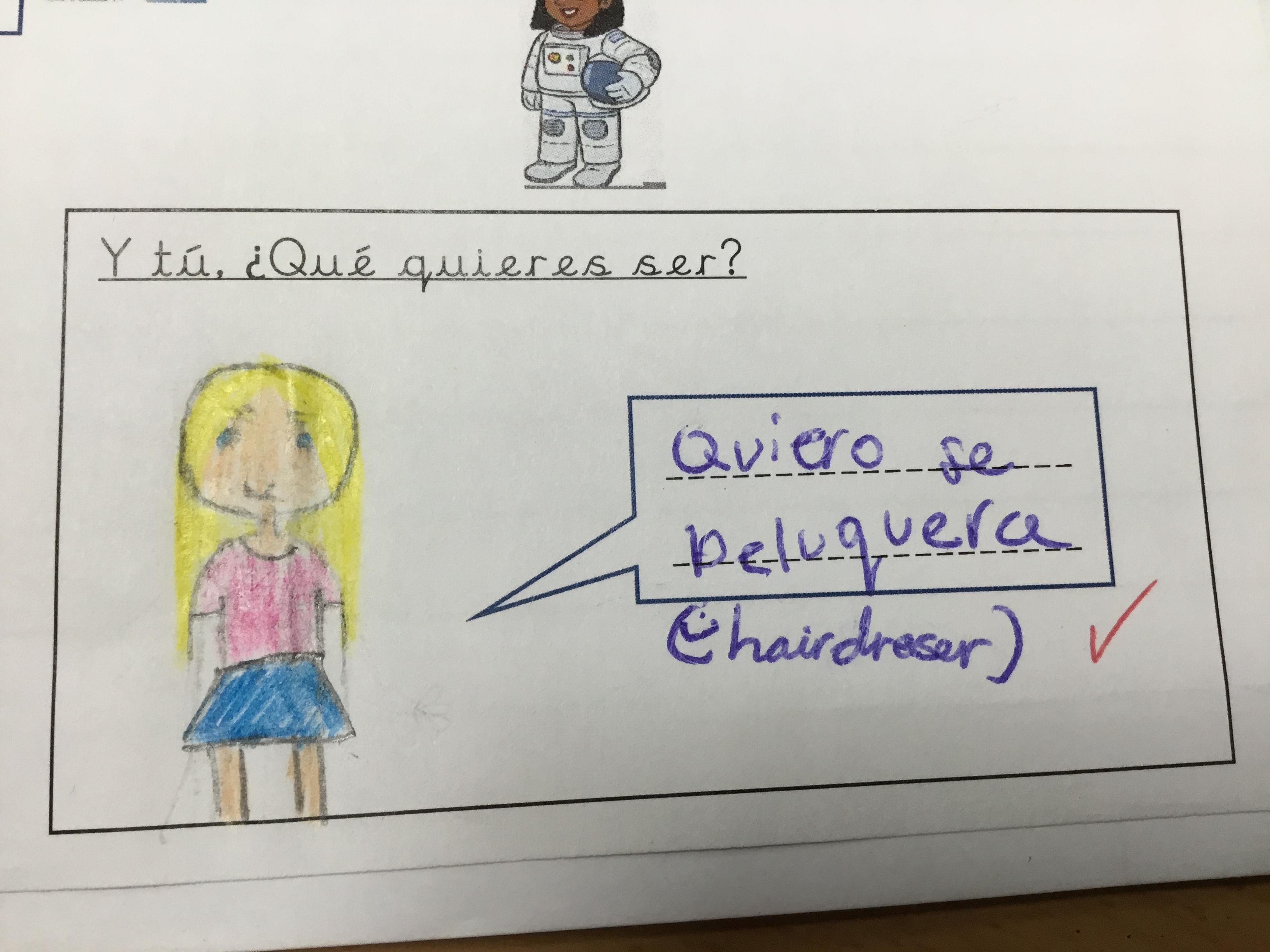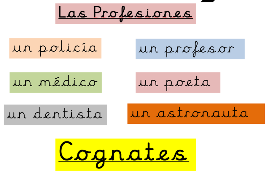 This week, we started to look at the names of different jobs in Spanish.  We could guess most of them because their names are cognates (the same or similar to English)