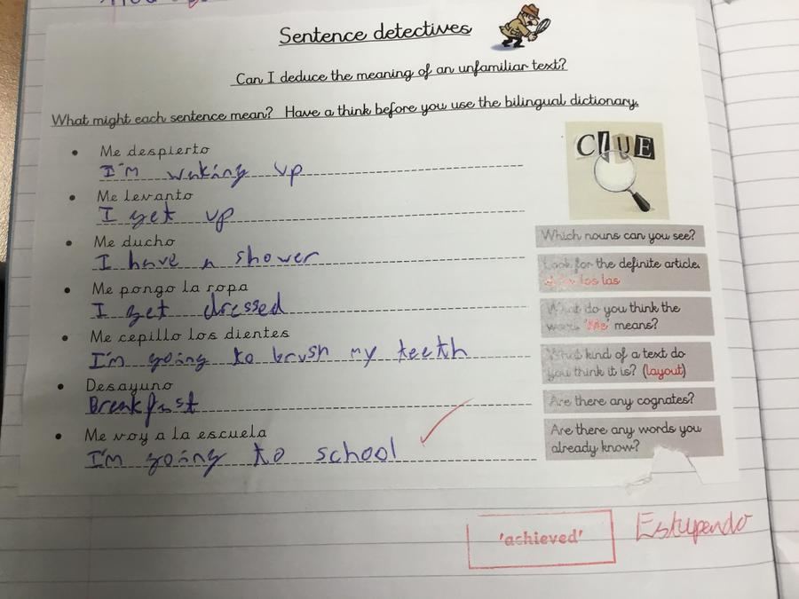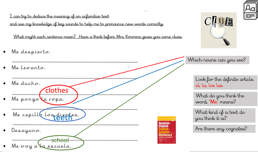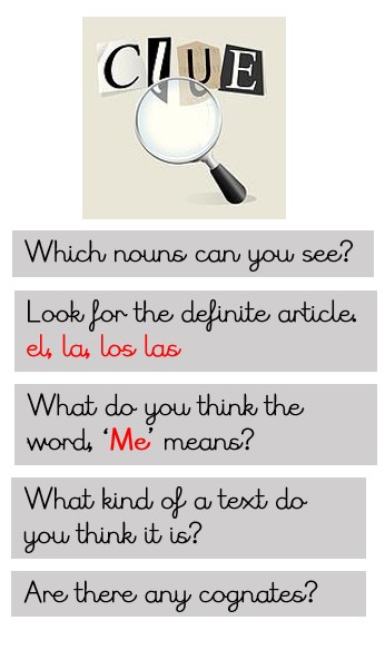 Today, we have been language detectives, trying to deduce the meaning of an unfamiliar text.  Before we looked in the Spanish dictionary, we looked for clues.