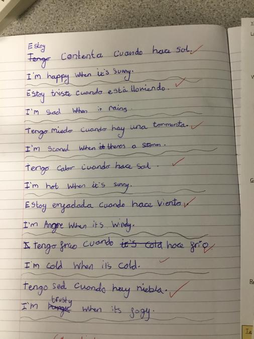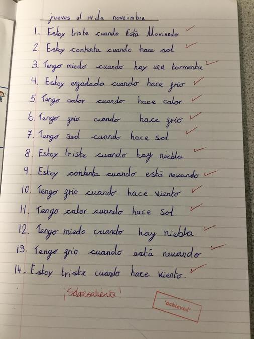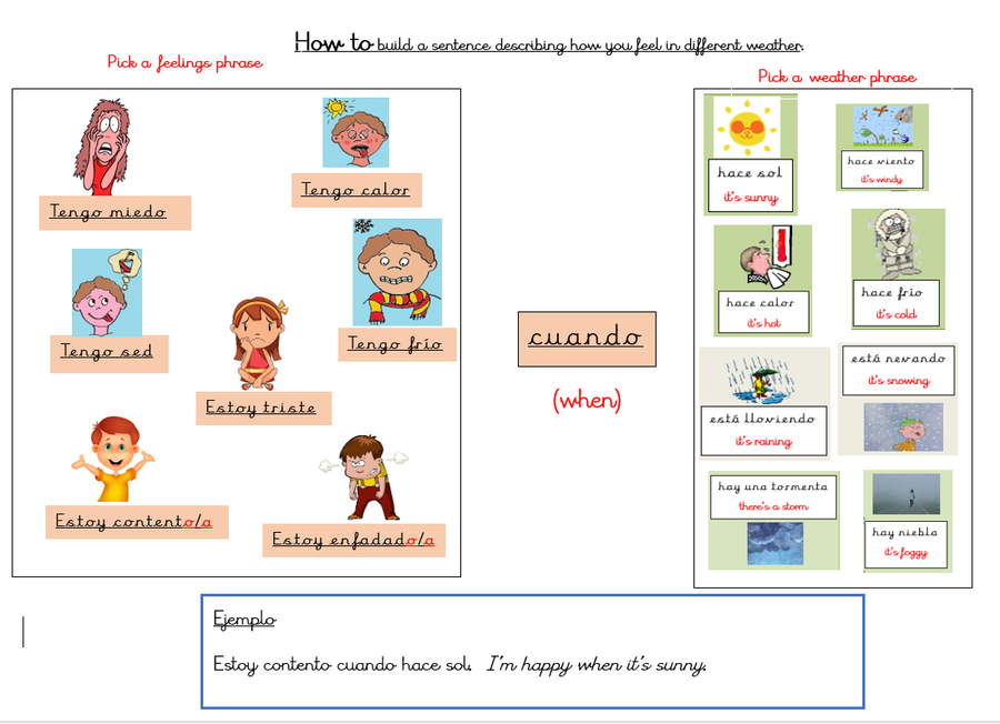 We extended our sentences using the word cuando (when), and described how the weather makes us feel.