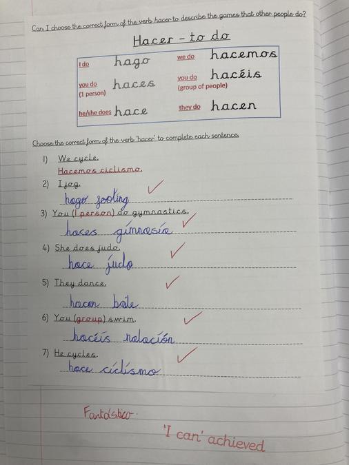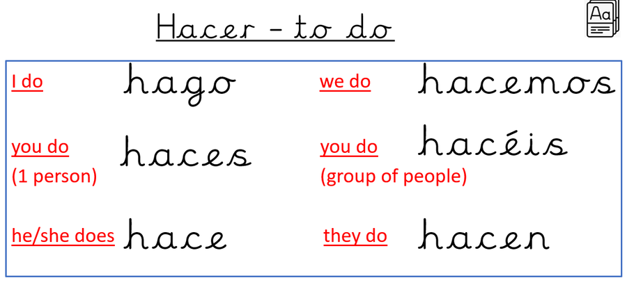 This week, we looked at the  verbs jugar  (to play)  and hacer  (to do), in more detail.