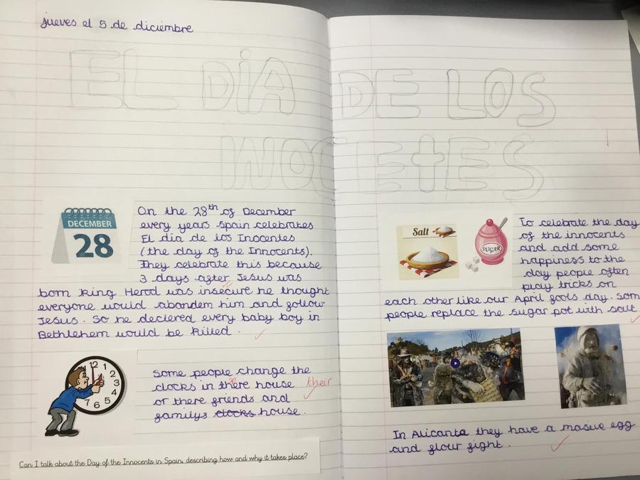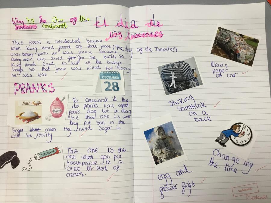 This week, we have been learning about a celebration in Spain that takes place on the 28th. December.  It is held in order to remember the innocent baby boys that were killed by King Herod.  People like to play practical jokes on each other.