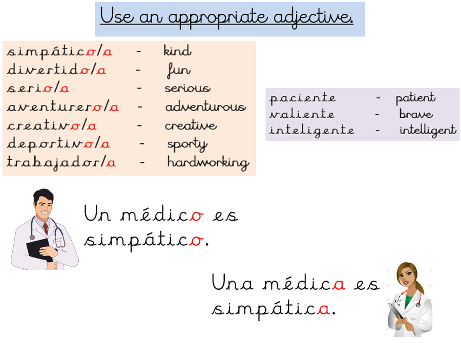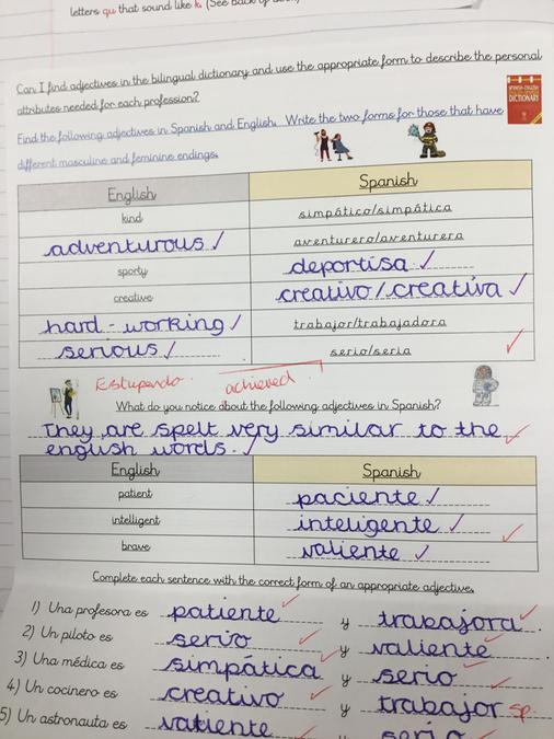 This week, we have been finding adjectives  in the bilingual dictionary to describe people who do certain jobs.