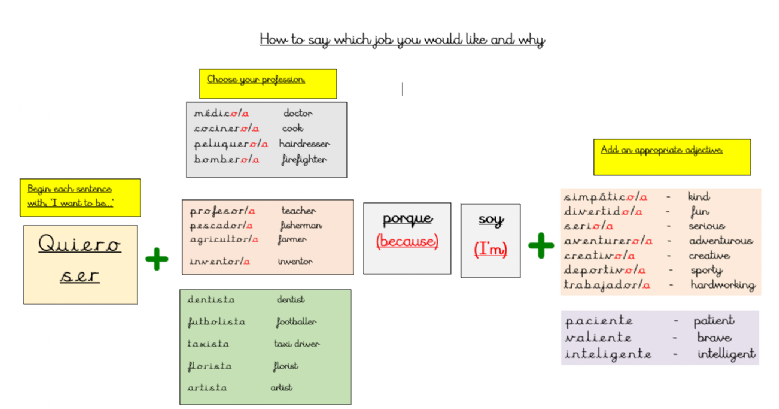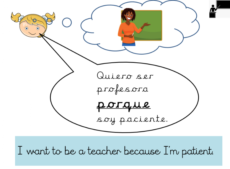 This week, we put everything we have learnt this term together in a longer sentence, using the word because. (porque).