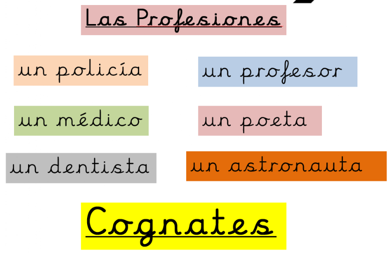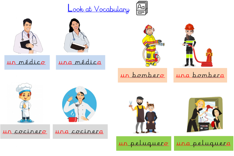 This half term we will be learning now to say which jobs we would like to do. In Spanish, many of the job names look similar to our English ones. We call these similar names cognates.